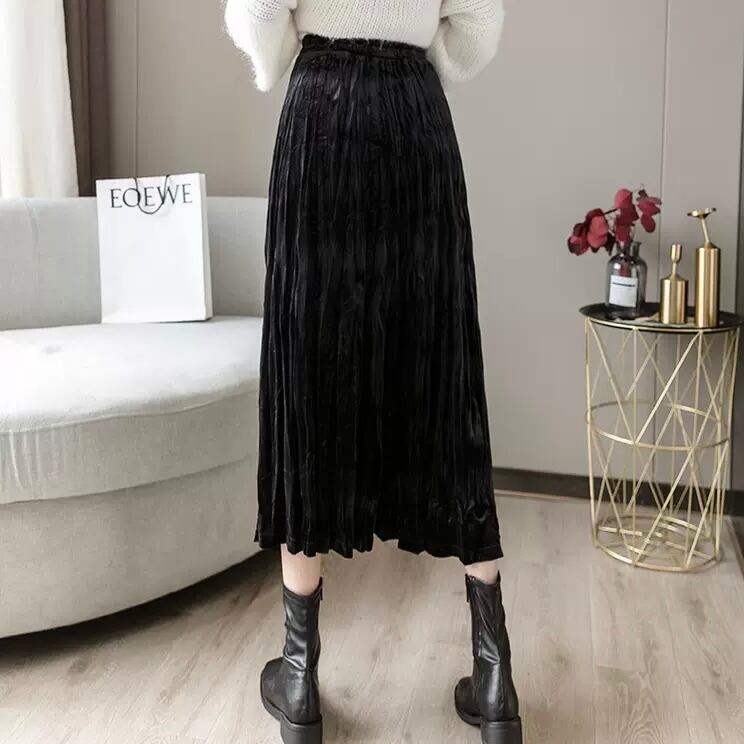 レディース スカート ボトムス プリーツスカート ミモレ ミモレ丈 ミディアム丈 フレア プリーツ ハイウエスト ウエストゴム ベルベット シンプル 大人 上品 おしゃれ レトロ 大人女子 個性的 モダン フリーサイズ 大きめ 黒 ブラック 灰色 グレー ベージュ 秋カラー 無地 秋 冬 2021 10代 20代 30代 女性用 ママ OL 通勤 学生 通学 デート お出かけ 女子会 休日 旅行 着回し 普段使い 韓国系 オルチャン コーデ 楽ちん モテ 体系カバー 新作 送料無料 | Rena 韓国ファッション レディースアパレル