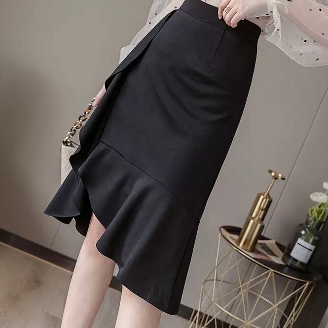 レディース スカート ボトムス ひざ丈 ミディアム丈 Aライン マーメイド アシンメトリー 裾フレア フィッシュテール フリル ファスナー ハイウエスト きれいめ 大人 上品 おしゃれ 大人女子 メンズライク キュート ガーリー 個性的 セクシー S M L XL 2XL ブラック 無地 春 夏 2021 10代 20代 30代 女性用 ママ OL 通勤 学生 通学 デート お出かけ 女子会 休日 韓国系 オルチャン コーデ モテ 美脚 新作 送料無料 | Rena 韓国ファッション レディースアパレル