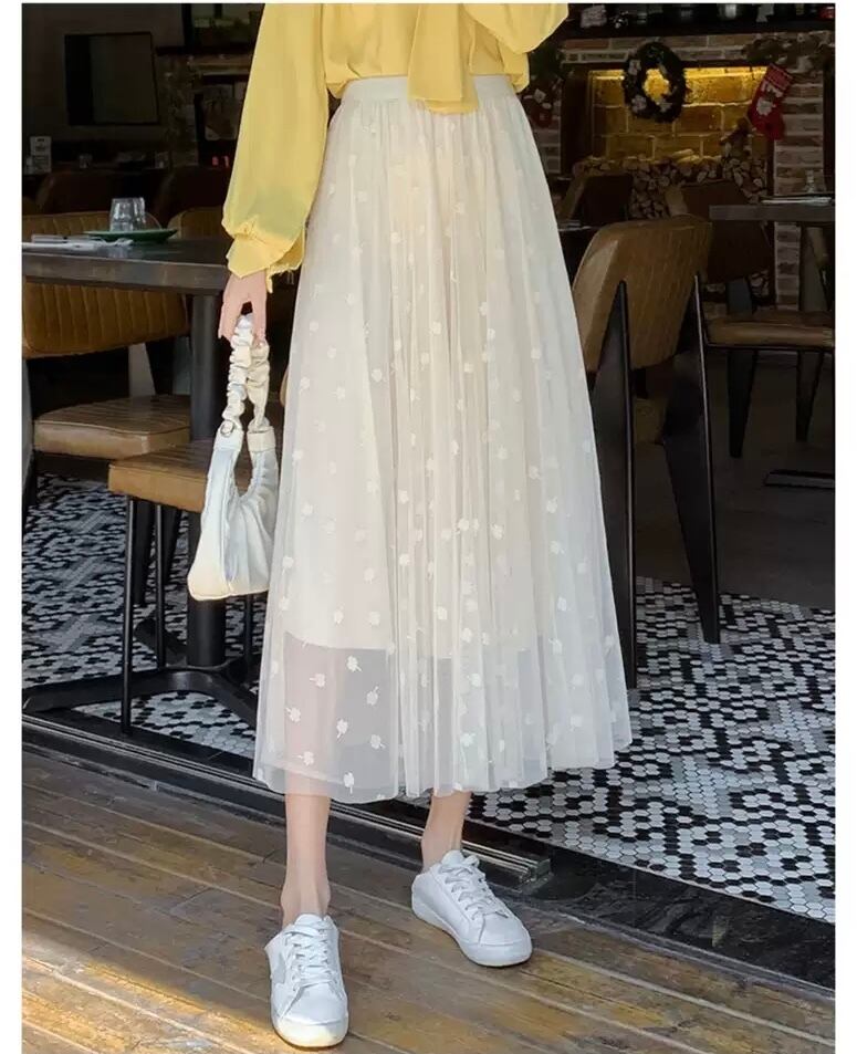 レディース スカート ボトムス フレアスカート ミモレ ミモレ丈 ミディアム丈 フレア Aライン ハイウエスト ウエストゴム メッシュ 透け感 大人可愛い きれいめ 大人 上品 おしゃれ 大人女子 メンズライク ラブリー キュート ガーリー フリーサイズ 白 ホワイト 黒 ブラック 柄 リーフ柄 春 夏 2021 10代 20代 30代 女性用 ママ OL 通勤 学生 通学 デート お出かけ 女子会 休日 リゾート 旅行 韓国系 オルチャン コーデ 楽ちん モテ 体系カバー 新作 送料無料
