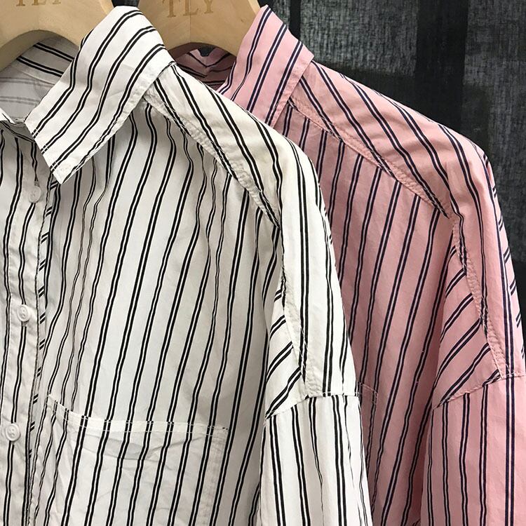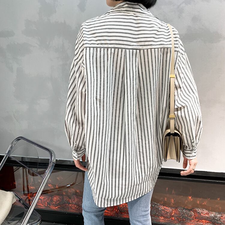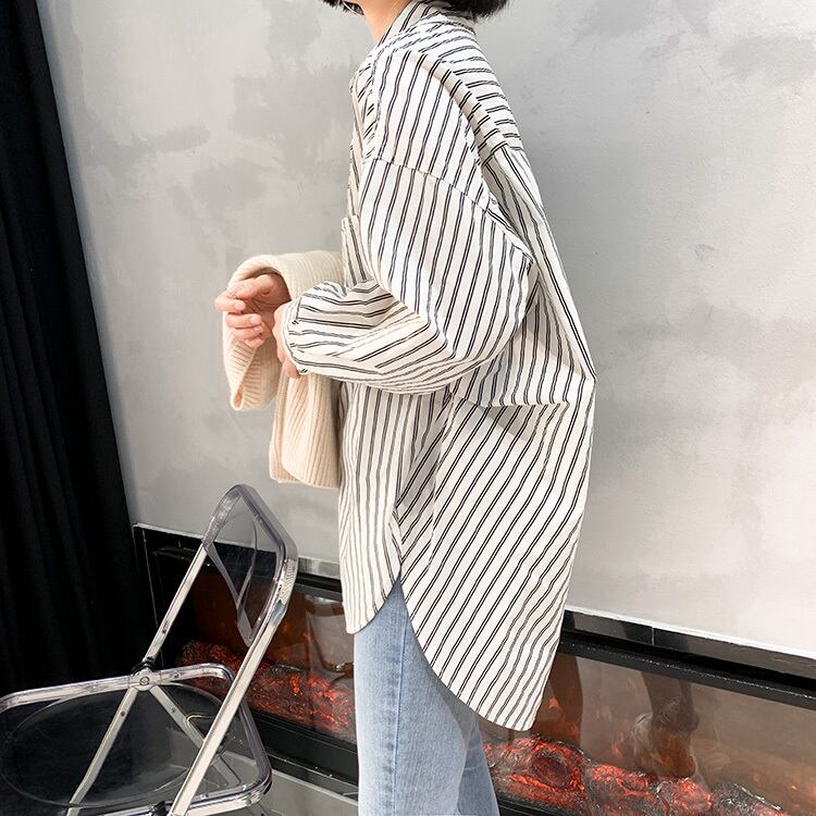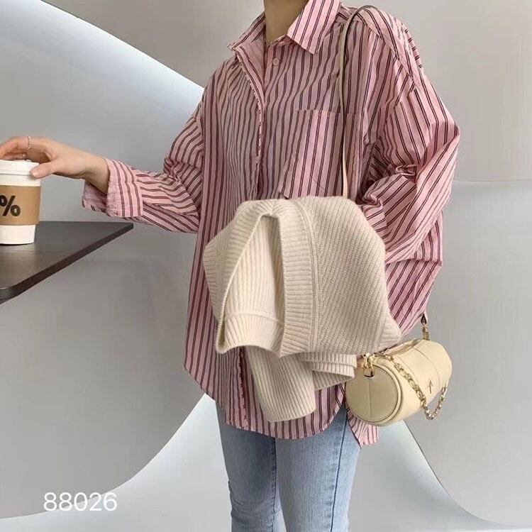 シャツ レディース 長袖 襟付き ストライプ 白 ピンク 春 秋 大人可愛い きれいめ シンプル カジュアル 大人 上品 おしゃれ かっこいい 大人女子 こなれ感 ラフ フリーサイズ ゆったり ホワイト 10代 20代 30代 40代 50代 ママ OL 通勤 学生 通学 デート お出かけ 公園デビュー 女子会 休日 ファッション コーデ 送料無料 | Rena 韓国ファッション レディースアパレル