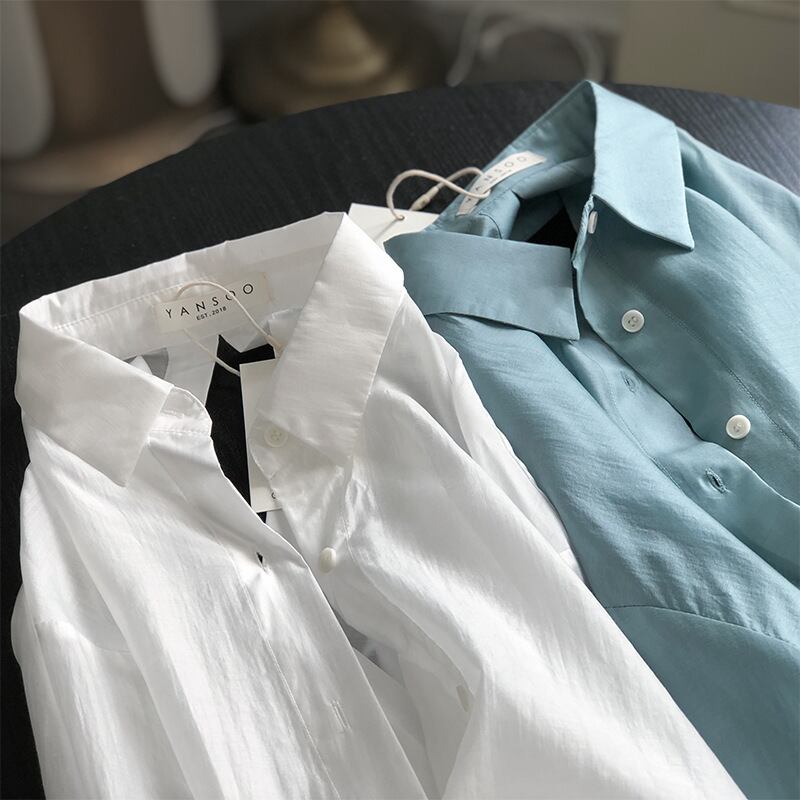 シャツ ブラウス レディース 白シャツ 薄手 長袖 襟付き バックリボン かわいい 大人可愛い シンプル カジュアル 大人 おしゃれ お洒落 かっこいい アジアン 大人女子 ラフ ボーイッシュ ルーズ S M L 白 ホワイト 青 ブルー カーキ ピンク 無地 春 夏 秋 10代 20代 30代 ママ OL 学生 デート お出かけ 女子会 休日 アウトドア 旅行 海 ファッション コーデ 送料無料 | Rena 韓国ファッション レディースアパレル
