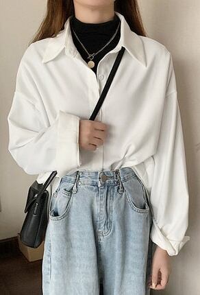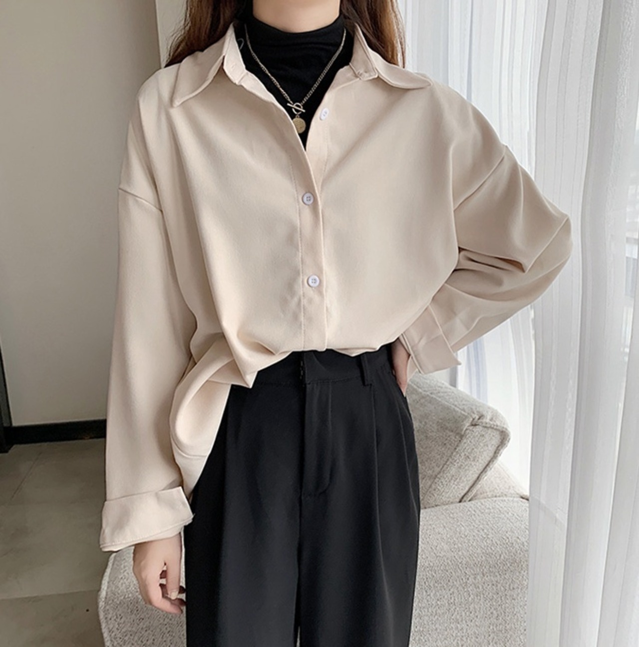 シャツ ブラウス レディース トップス 長袖 襟付き シンプル かわいい 大人可愛い きれいめ カジュアル 上品 おしゃれ レトロ 大人女子 クール フリーサイズ 白 ホワイト 青 ブルー 紫 パープル ベージュ ピンク 無地 春 秋 10代 20代 30代 OL 通勤 学生 通学 デート お出かけ 女子会 休日 旅行 着回し ファッション コーデ 送料無料 | Rena 韓国ファッション レディースアパレル