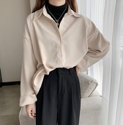 シンプルなデザインの長袖シャツです。パンツにもスカートにも合わせやすく通勤にもピッタリです!