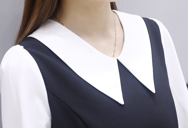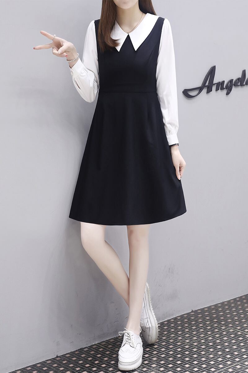 ワンピース ショート丈 膝上 長袖 襟付き Aライン バックリボン 春 秋 冬 かわいい 大人可愛い きれいめ 上品 おしゃれ 大人女子 キュート S M L XL 2XL 3XL 黒 ブラック 無地 オールシーズン 10代 20代 OL 学生 デート お出かけ 女子会 休日 ファッション コーデ 送料無料 | Rena 韓国ファッション レディースアパレル