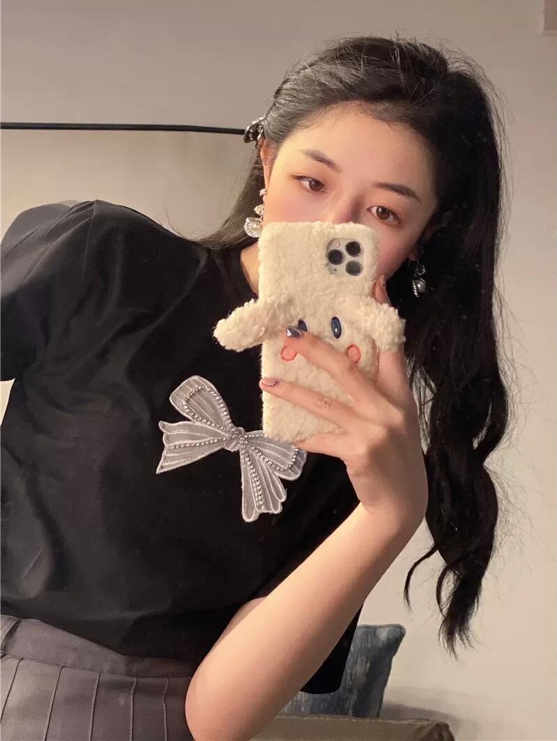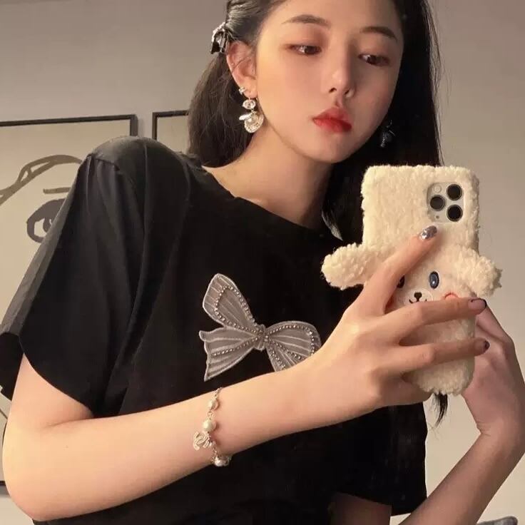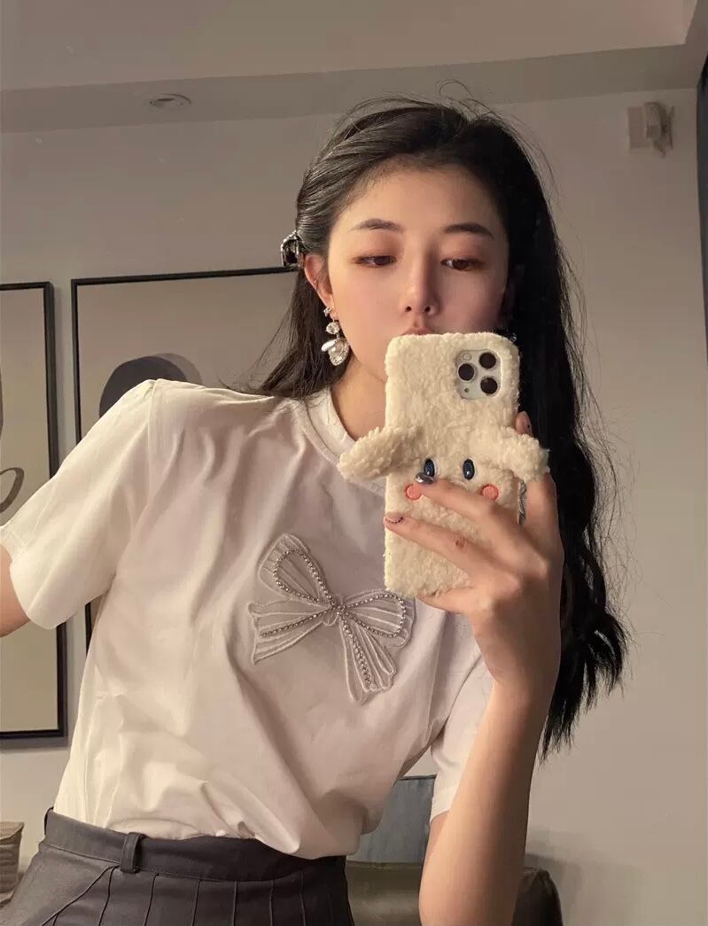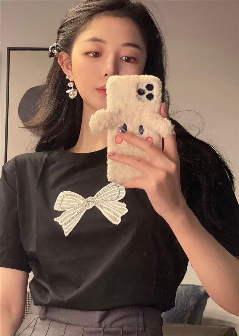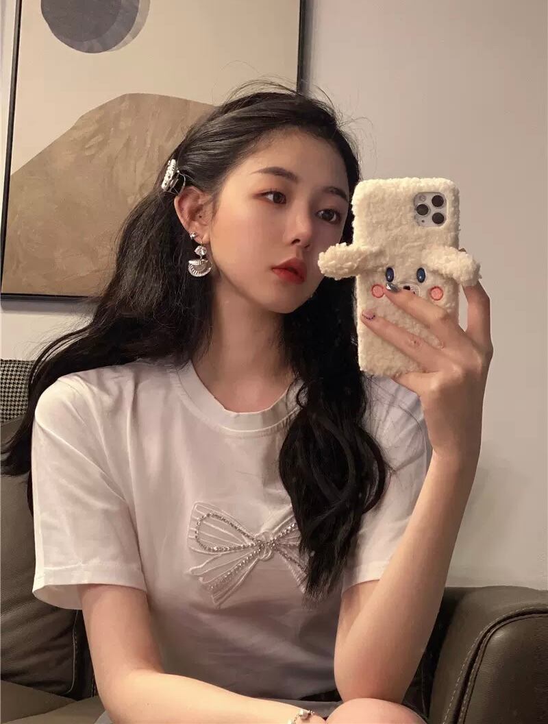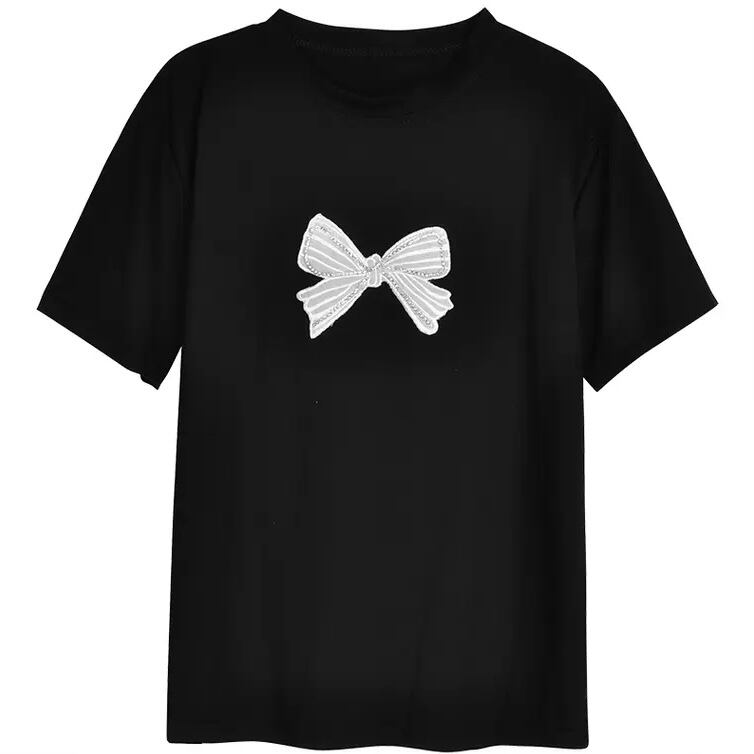レディース トップス Tシャツ 白シャツ 白トップス 袖あり 半袖 ラウンドネック 刺繍 リボン パール かわいい 大人可愛い シンプル カジュアル 大人 おしゃれ 大人女子 メンズライク キュート ガーリー フリーサイズ 白 ホワイト 黒 ブラック 無地 夏 2021 10代 20代 女性用 ママ 学生 通学 デート お出かけ 公園デビュー 女子会 休日 着回し 普段使い 韓国系 オルチャン 新作 送料無料 | Rena 韓国ファッション レディースアパレル