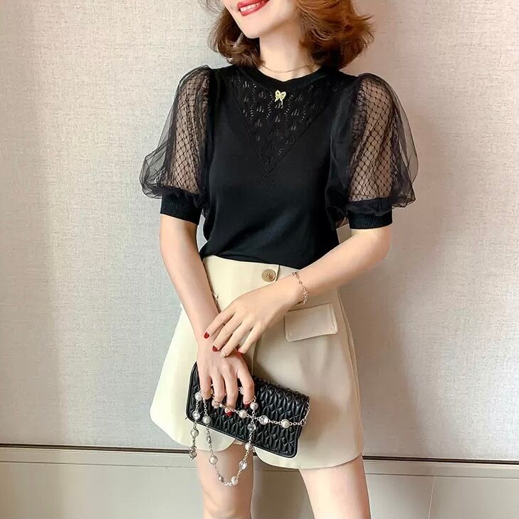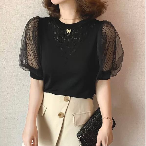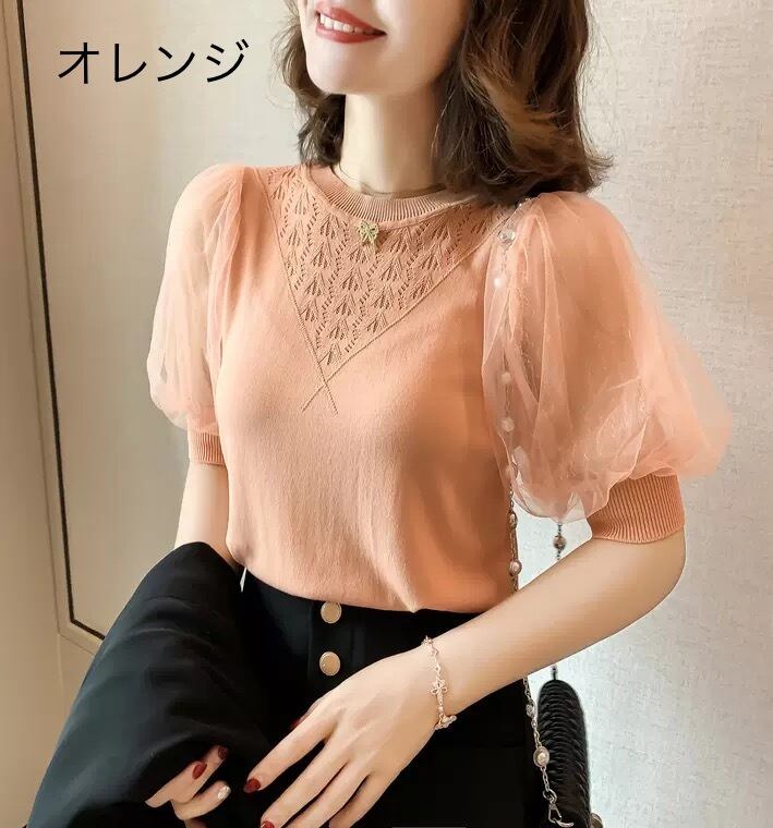 レディース トップス Tシャツ 白シャツ 白トップス 袖あり 半袖 ボリューム袖 パフスリーブ ラウンドネック リボン 透け感 シースルー かわいい 大人可愛い 大人 おしゃれ 大人女子 メンズライク キュート ガーリー セクシー エレガント S M L XL ホワイト ブラック ベージュ オレンジ 大人カラー 春カラー 無地 春 夏 2021 10代 20代 30代 女性用 ママ OL 通勤 学生 通学 デート お出かけ 女子会 休日 韓国系 オルチャン モテ 新作 送料無料 トレンド | Rena 韓国ファッション レディースアパレル
