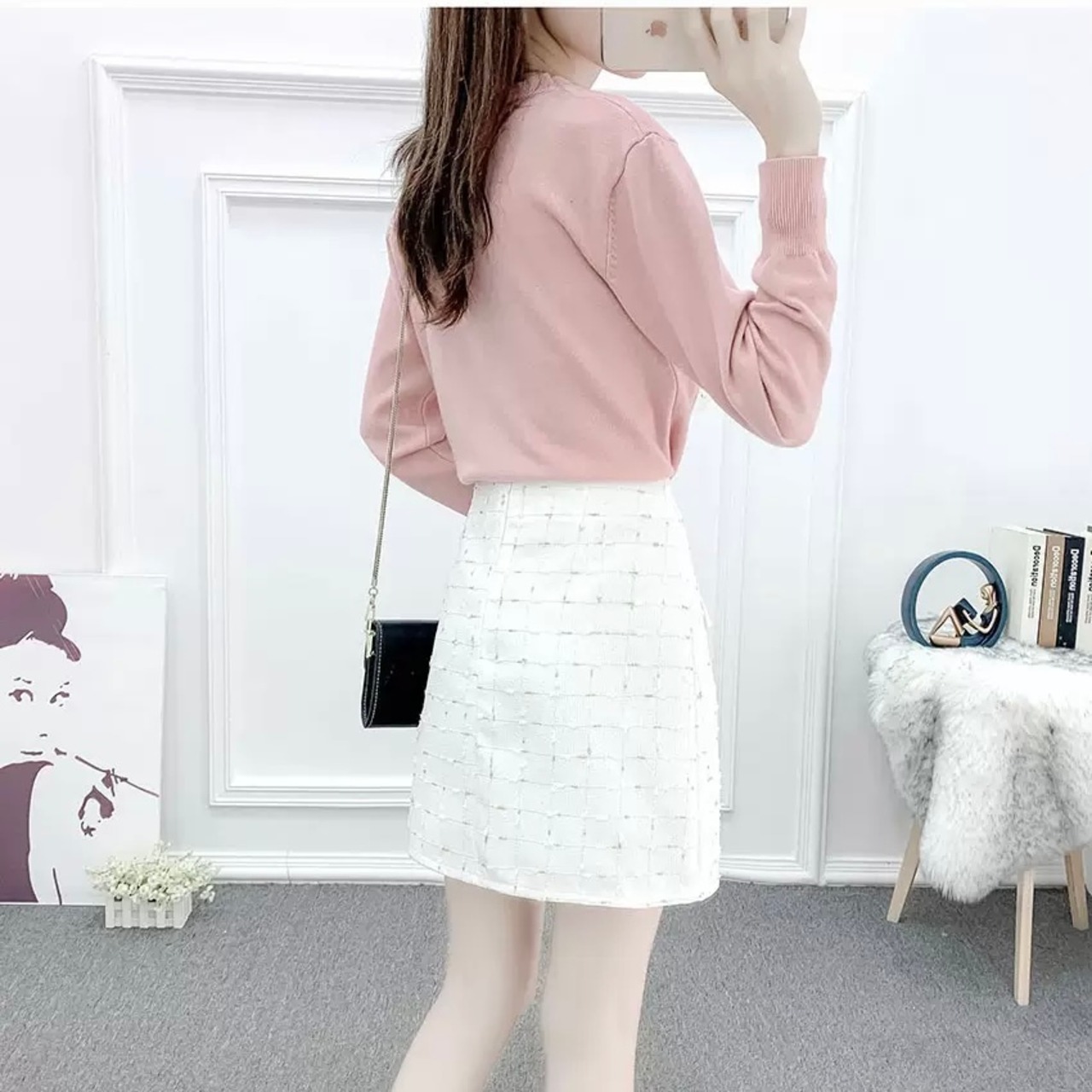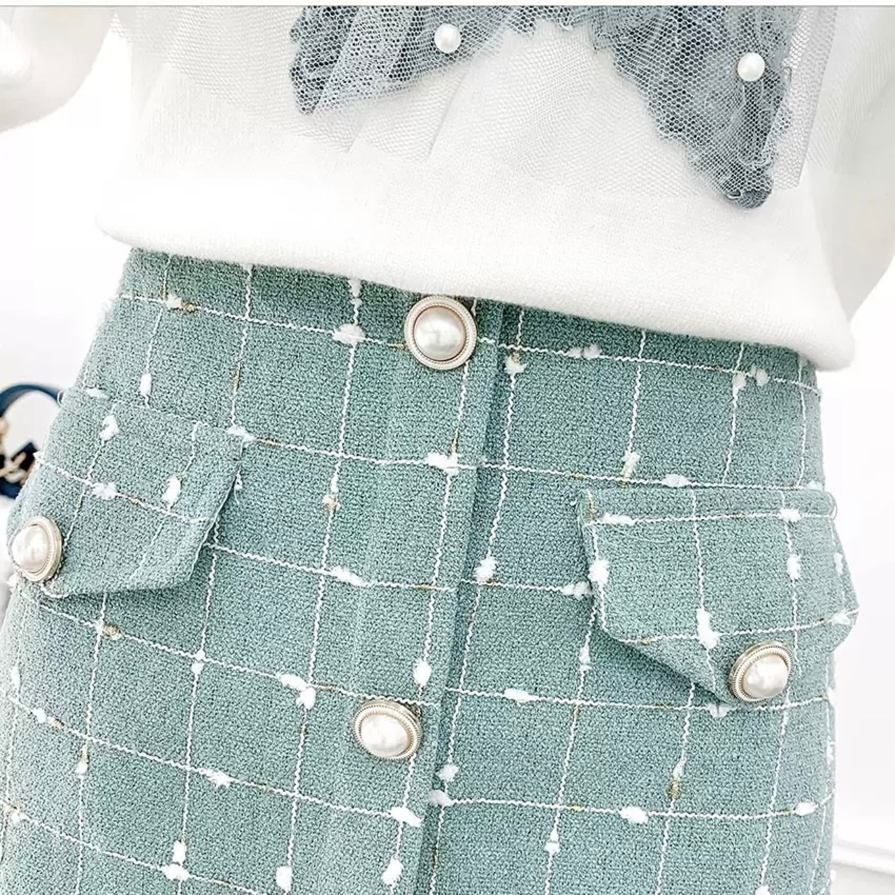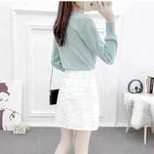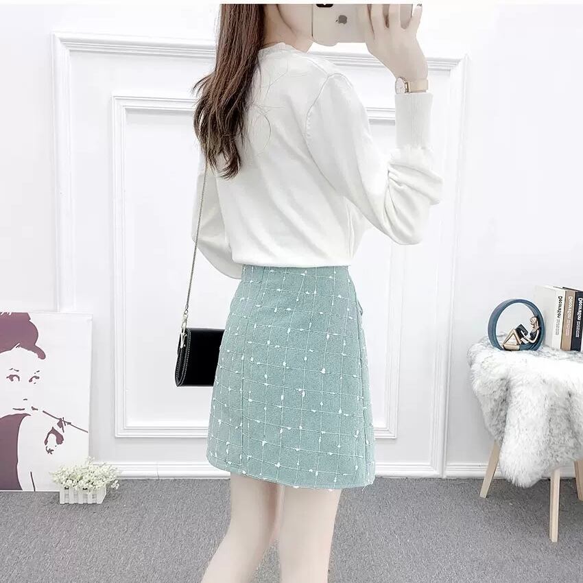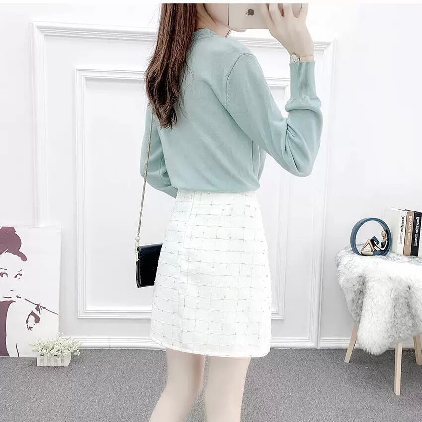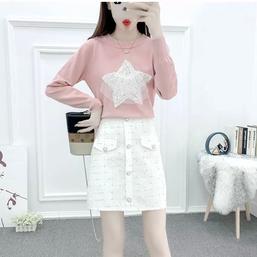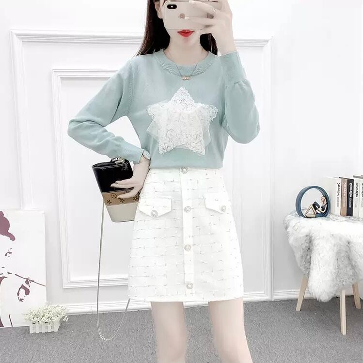 レディース トップス スカート セットアップ Tシャツ 白トップス ペンシルスカート ショート ショート丈 袖あり 長袖 ラウンドネック レース 刺繍 ハイウエスト パール 星 2点セット ツーピース かわいい 大人可愛い 大人 おしゃれ ラブリー キュート S M L XL ホワイト グリーン ピンク パステルカラー 柄 チェック柄 春 秋 2021 10代 20代 女性用 ママ 学生 通学 デート お出かけ 女子会 休日 リゾート 旅行 モテ 美脚 脚長 新作 送料無料 | Rena 韓国ファッション レディースアパレル