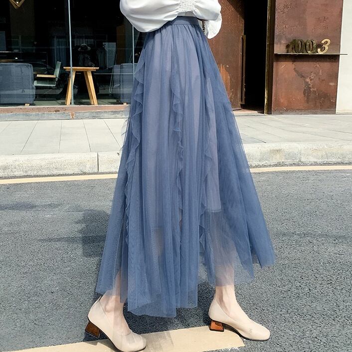 ロング丈のシンプルなチュールスカートです。