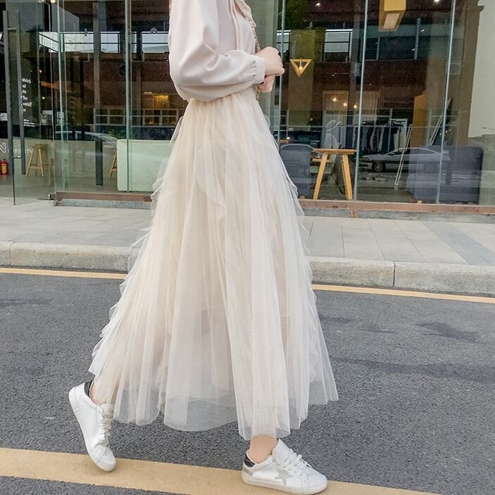 スカート チュールスカート ミモレ丈 ロング丈 チュール かわいい 大人可愛い きれいめ シンプル カジュアル 大人 上品 おしゃれ お洒落 大人女子 ガーリー エレガント 主役級 存在感 フリーサイズ 白 ホワイト 黒 ブラック 青 ブルー ベージュ ピンク 春 夏 10代 20代 30代 40代 女性用 デート お出かけ 公園デビュー 女子会 休日 イベント リゾート 旅行 海 プール 着回し 普段使い ファッション コーデ モテ 送料無料 | Rena 韓国ファッション レディースアパレル