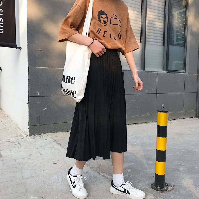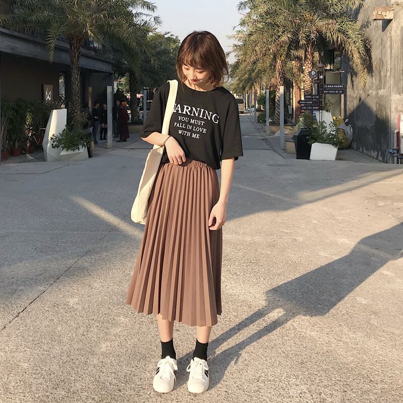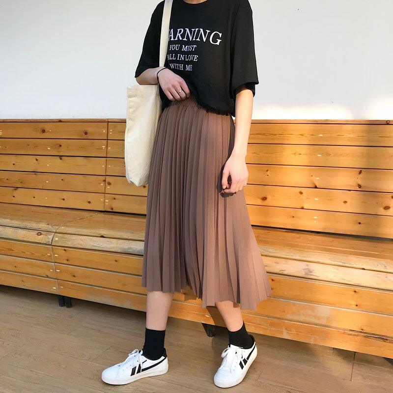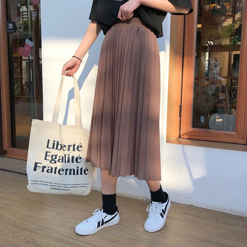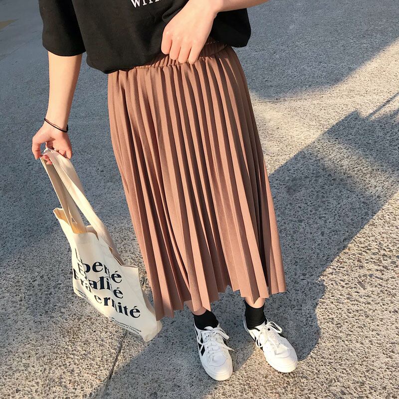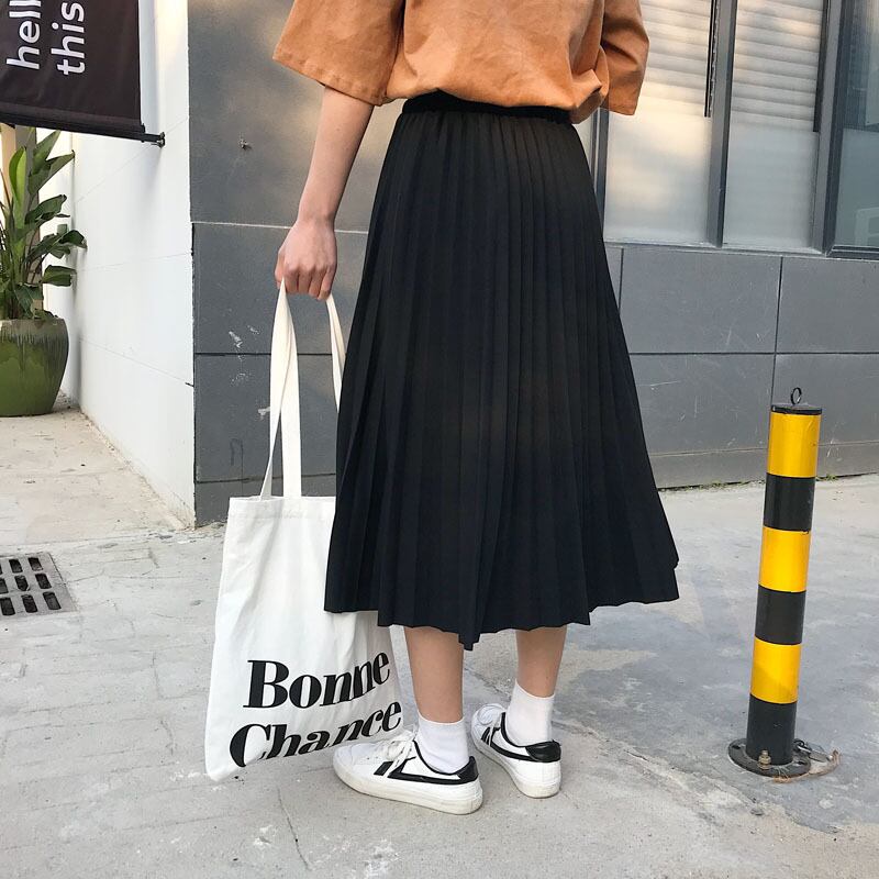 スカート ボトムス プリーツスカート ロング ロング丈 プリーツ かわいい 大人可愛い きれいめ シンプル カジュアル 大人 上品 おしゃれ お洒落 大人女子 ラフ ガーリー 存在感 フリーサイズ 黒 ブラック 無地 春 夏 秋 10代 20代 30代 女性用 学生 通学 デート お出かけ 公園デビュー 女子会 休日 旅行 着回し 普段使い ファッション コーデ モテ 送料無料 | Rena 韓国ファッション レディースアパレル