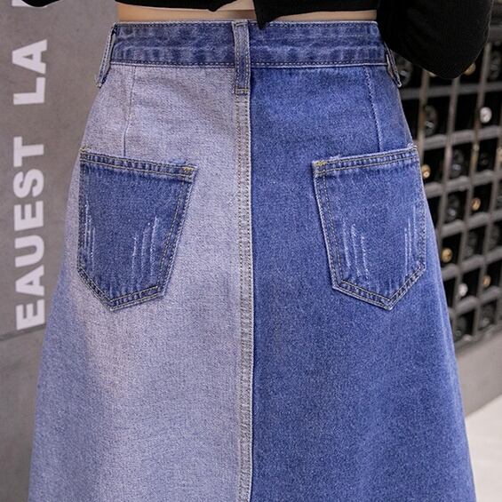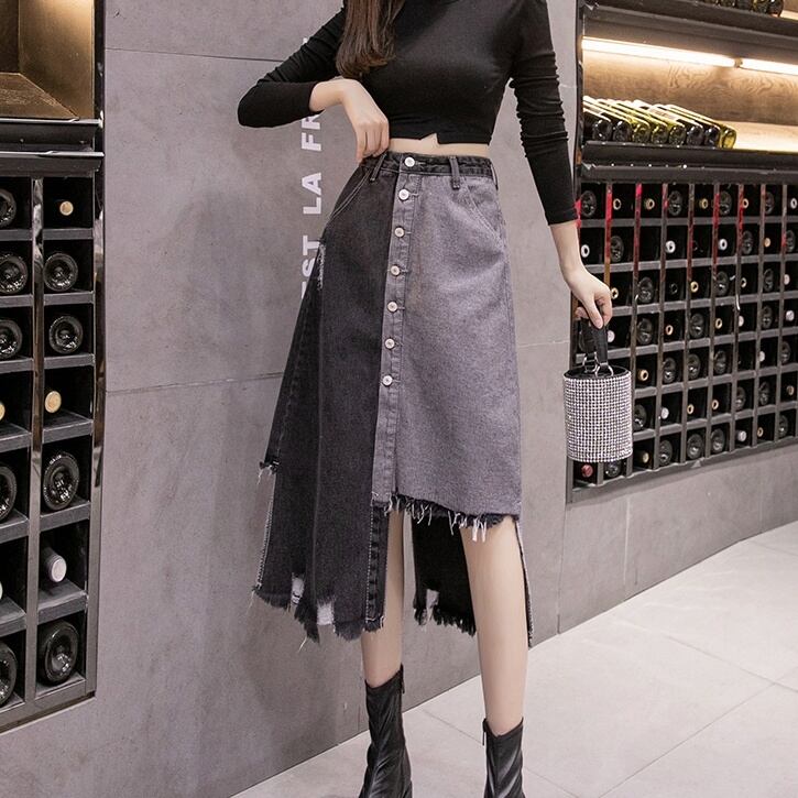 スカート デニムスカート ミモレ丈 アシンメトリ スリット 前ボタン サイドスリット ハイウエスト デニム かわいい 大人可愛い シンプル カジュアル 大人 上品 おしゃれ お洒落 大人女子 ラフ 個性的 主役級 存在感 S M L XL 春 夏 10代 20代 30代 女性用 デート お出かけ 公園デビュー 女子会 休日 着回し 普段使い ファッション コーデ モテ 送料無料 インスタ映え | Rena 韓国ファッション レディースアパレル