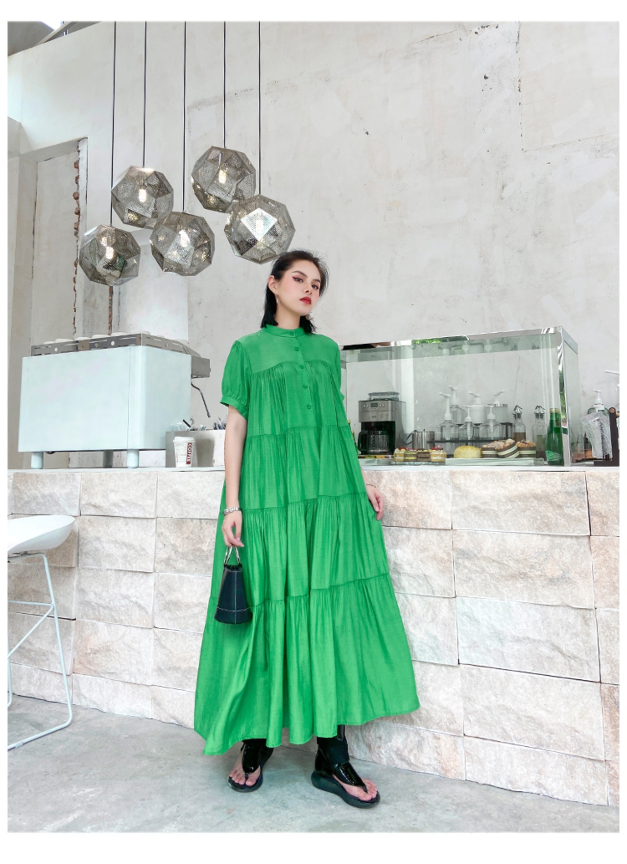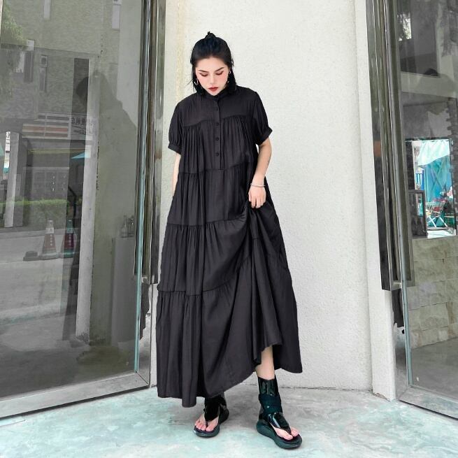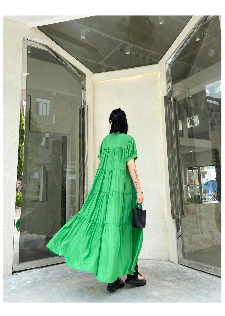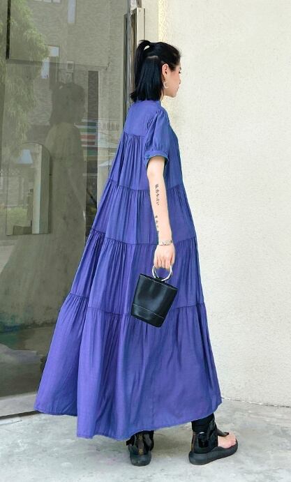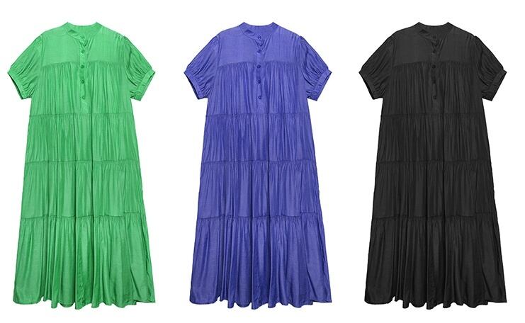 レディース ワンピース ワンピドレス ロング ロング丈 袖あり 半袖 ラウンドネック ティアード 大人可愛い シンプル おしゃれ お洒落 かっこいい 大人可愛い 大人女子 こなれ感 主役級 存在感 フリーサイズ ゆったり 黒 ブラック 緑 グリーン 紫 パープル 無地 春 夏 秋 10代 20代 30代 お出かけ 休日 ファッション コーデ スタイル 楽ちん 送料無料 | Rena 韓国ファッション レディースアパレル