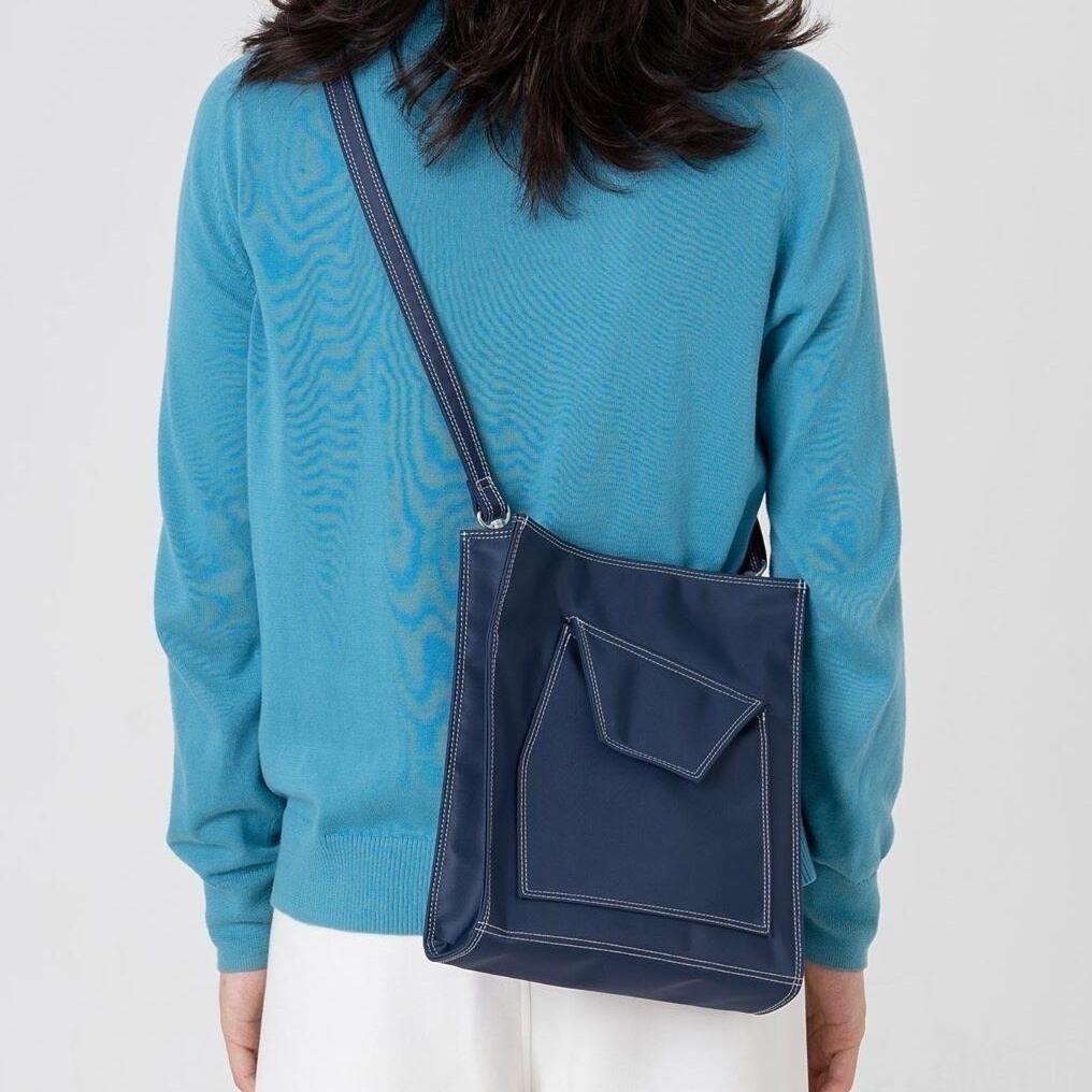表面にバッグがデザインされたおしゃれなショルダーバッグです。
