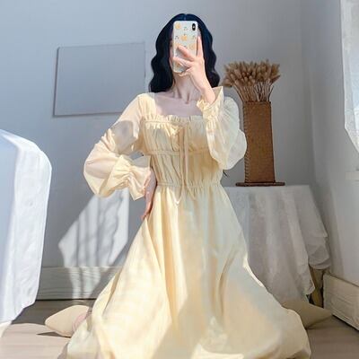 ワンピース フレアワンピース ミモレ丈 袖あり 長袖 ボリューム袖 シフォン 春 秋 スクエアネック フレア セミフレア Aライン 裾フレア シフォン ポリエステル かわいい 大人可愛い きれいめ シンプル 大人 上品 おしゃれ お洒落 大人可愛い 大人女子 キュート ガーリー 抜け感 S M L XL 2XL ワンカラー 無地 春 夏 20代 30代 デート お出かけ 公園デビュー 女子会 休日 旅行 着回し 普段使い 韓国 韓国系 楽ちん モテ 新作 送料無料 トレンド 流行 インスタ映え | Rena 韓国ファッション レディースアパレル