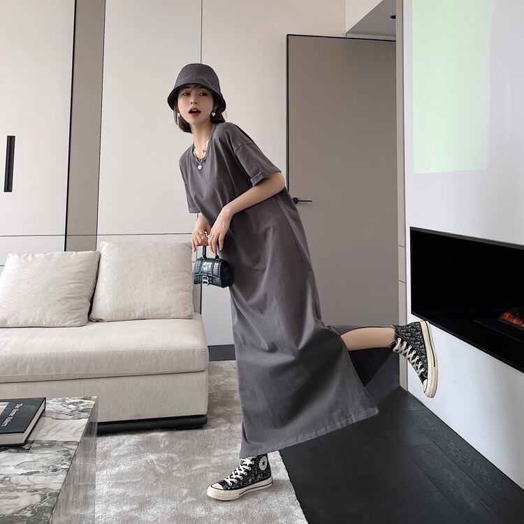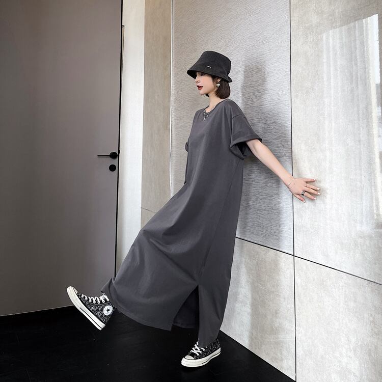 ワンピース Tシャツワンピース ロング丈 マキシ丈 Uネック シック ワイド Iライン 伸縮性 かわいい 大人可愛い きれいめ シンプル カジュアル 大人 おしゃれ お洒落 レトロ 大人可愛い 大人女子 こなれ感 ラフ ボーイッシュ L XL 2XL くすみカラー 無地 夏 秋 20代 30代 学生 通学 デート お出かけ 公園デビュー 女子会 お泊まり 休日 リゾート 着回し 韓国 韓国系 オルチャン ファッション コーデ スタイル 楽ちん モテ 新作 定番 プチプラ 送料無料 トレンド 流行 | Rena 韓国ファッション レディースアパレル