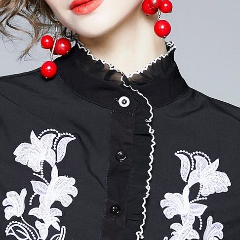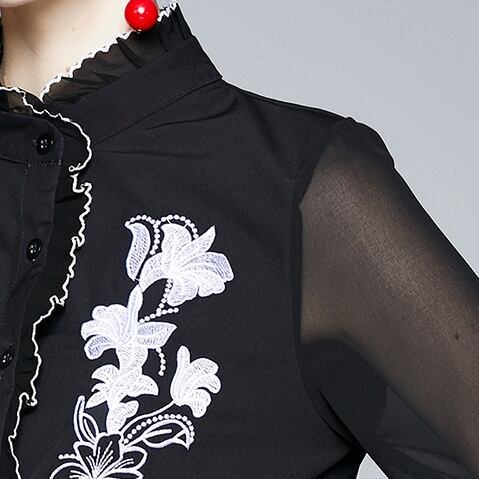 ブラウス レディース トップス 長袖 シースルー 刺繍 フリル かわいい 大人可愛い きれいめ 大人 上品 おしゃれ お洒落 大人女子 個性的 エレガント 主役級 存在感 M L XL 2XL 黒 ブラック 花柄 フラワー 春 秋 10代 20代 30代 40代 女性用 オフィス OL 通勤 デート お出かけ 公園デビュー 女子会 休日 着回し 普段使い ファッション コーデ モテ 送料無料 インスタ映え | Rena 韓国ファッション レディースアパレル