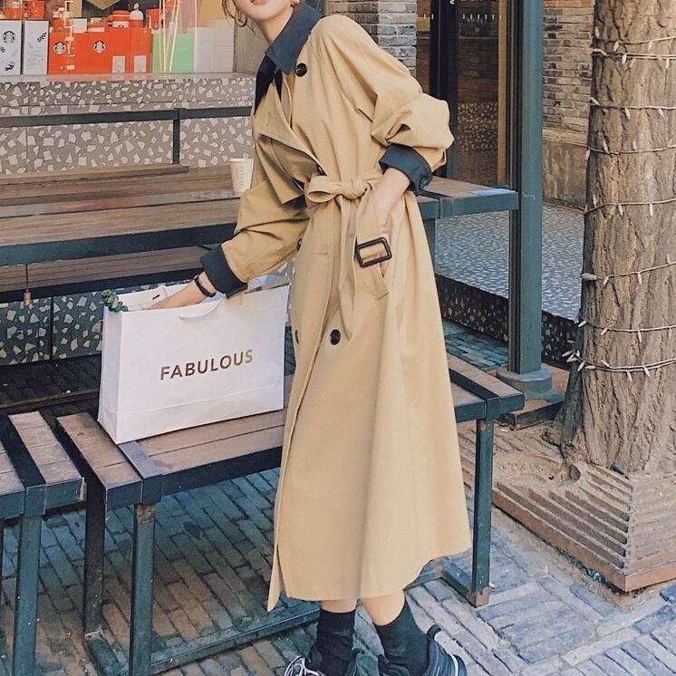 トレンチコート レディース アウター コート ロング丈 ベルト 大人可愛い きれいめ カジュアル 大人 上品 おしゃれ お洒落 かっこいい 大人女子 ラフ 個性的 主役級 存在感 S M L XL バイカラー 春 秋 10代 20代 30代 40代 女性用 デート お出かけ 公園デビュー 女子会 休日 着回し 普段使い ファッション コーデ モテ 送料無料 インスタ映え | Rena 韓国ファッション レディースアパレル