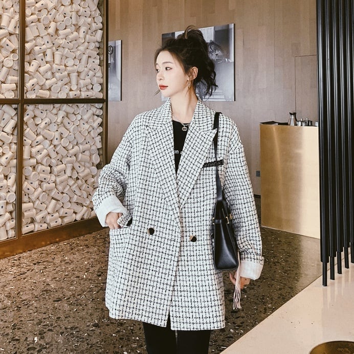 ジャケット レディース アウター コート チェック ミディアム丈 大人可愛い きれいめ 大人 上品 おしゃれ お洒落 かっこいい 大人女子 個性的 エレガント 主役級 存在感 S M L XL モノトーン チェック柄 冬 10代 20代 30代 女性用 学生 通学 デート お出かけ 公園デビュー 女子会 休日 着回し 普段使い ファッション コーデ モテ 送料無料 インスタ映え | Rena 韓国ファッション レディースアパレル