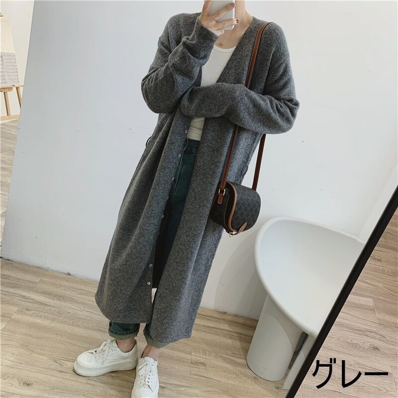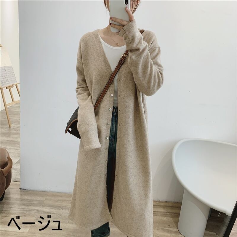 カーディガン ロング丈 レディース トップス Vネック Iライン 大人可愛い きれいめ シンプル カジュアル 大人 上品 おしゃれ お洒落 大人女子 ラフ クール フリーサイズ 灰色 グレー ベージュ 無地 春 秋 10代 20代 30代 40代 女性用 デート お出かけ 公園デビュー 女子会 お泊まり 休日 着回し 普段使い 重ね着 コーデ スタイル 楽ちん モテ 送料無料 | Rena 韓国ファッション レディースアパレル