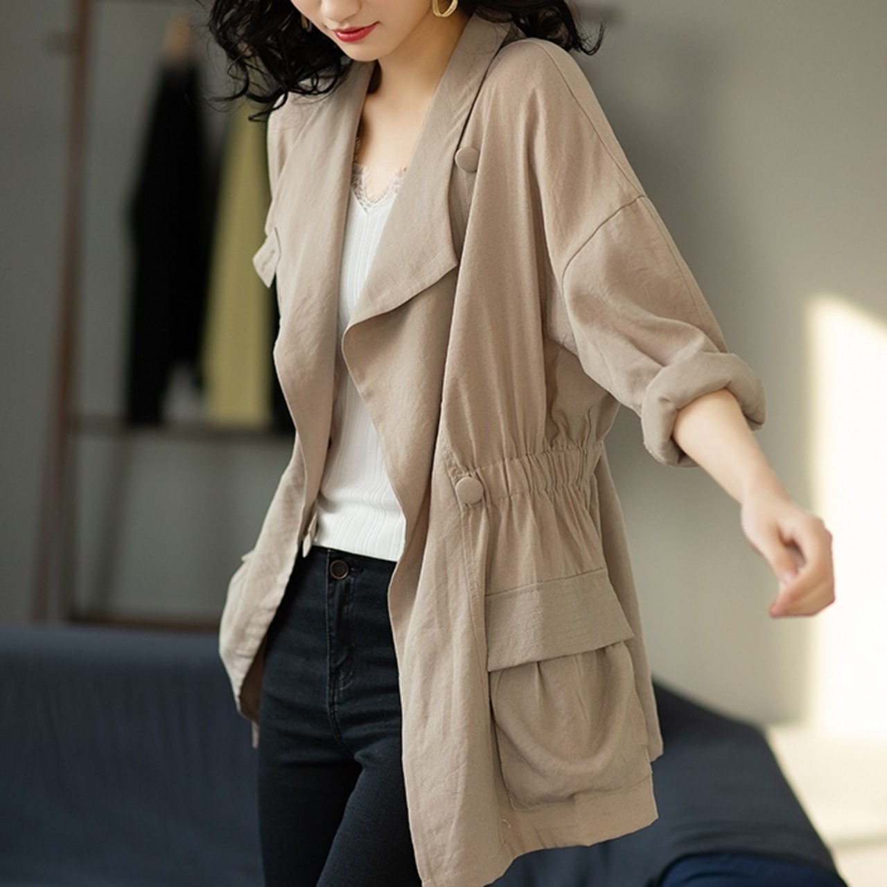 ジャケット ブルゾン レディース アウター 薄手 ミドル丈 長袖 春 秋 かわいい 大人可愛い きれいめ シンプル カジュアル 大人 上品 おしゃれ お洒落 かっこいい 大人女子 ラフ クール エレガント 主役級 L XL 2XL 3XL 4XL 5XL ベージュ ネイビー 無地 春 秋 10代 20代 30代 40代 50代 女性用 オフィス ビジネス OL 通勤 デート お出かけ 公園デビュー 女子会 休日 着回し 普段使い ファッション コーデ モテ 送料無料 | Rena 韓国ファッション レディースアパレル