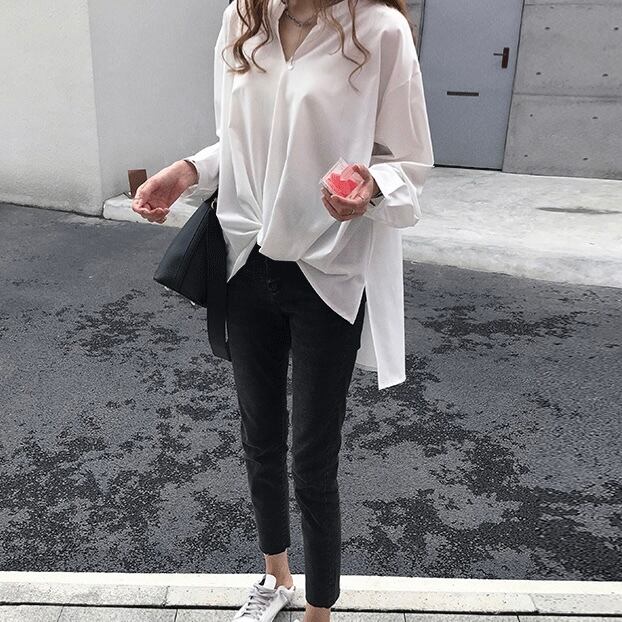 ブラウス シャツ レディース 白シャツ 長袖 ドロップショルダー Vネック 襟付き バックロング フレア シフォン 大人可愛い きれいめ シンプル カジュアル 大人 上品 おしゃれ レトロ 大人女子 メンズライク ガーリー M L XL 2XL 3XL 4XL ホワイト ブルー グリーン 無地 春 秋 2021 10代 20代 30代 女性用 ママ OL 通勤 学生 通学 デート お出かけ 公園デビュー 女子会 休日 韓国系 オルチャン モテ 体系カバー 新作 送料無料 | Rena 韓国ファッション レディースアパレル