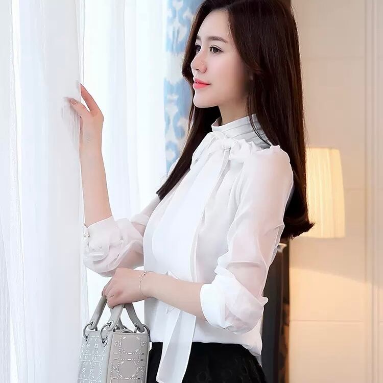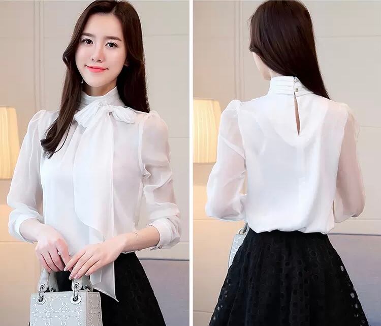 ブラウス レディース 白シャツ 袖あり 長袖 ハイネック セミフレア シフォン リボン 透け感 シースルー 薄手 きれいめ シンプル 大人 上品 おしゃれ 大人女子 セクシー エレガント フォーマル S M L XL 2XL 3XL ホワイト ブラック グレー ピンク 大人カラー 無地 春 秋 2021 20代 30代 女性用 ママ オフィス OL 通勤 学生 通学 デート お出かけ 女子会 休日 韓国系 オルチャン 新作 送料無料 | Rena 韓国ファッション レディースアパレル