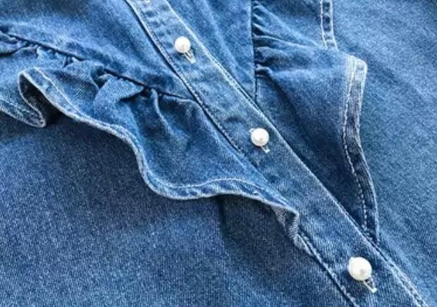 ブラウス シャツ デニム レディース 長袖 ドロップショルダー 襟付き フリル ラウンドカット パールボタン 前開き 大人可愛い カジュアル 大人 おしゃれ 大人女子 メンズライク ガーリー 個性的 M L XL 2XL 3XL 4XL 大きいサイズ ブルー 無地 春 秋 2020 10代 20代 女性用 ママ 通勤 学生 通学 デート お出かけ 公園デビュー 女子会 休日 韓国系 オルチャン モテ 新作 送料無料