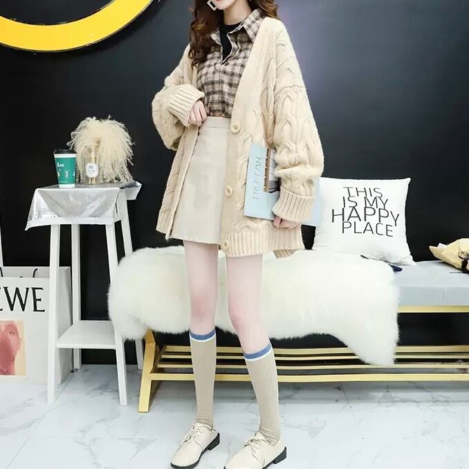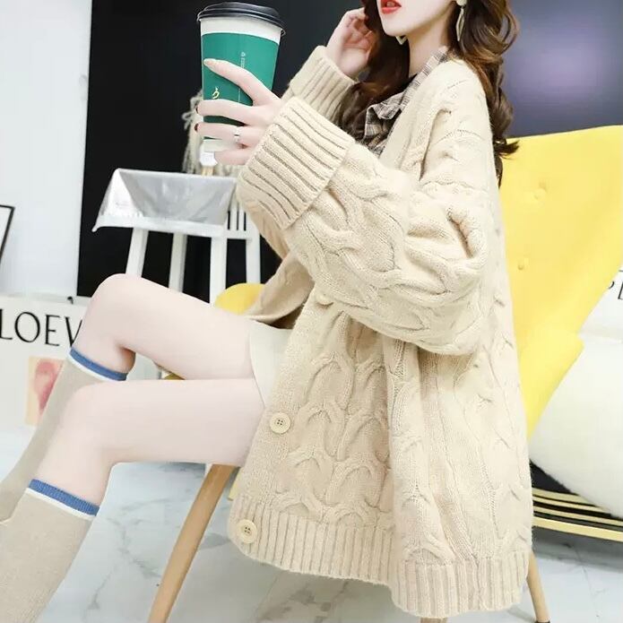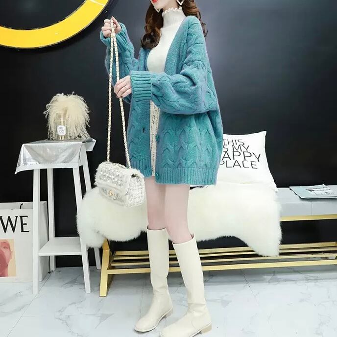 ニット カーディガン レディース トップス ロング 袖あり 長袖 ボリューム袖 萌袖 Vネック 前開き ニット 厚手 かわいい カジュアル おしゃれ 大人可愛い 大人女子 メンズライク ガーリー ルーズ とろみ感 抜け感 フリーサイズ ゆったり ゆる ブルー パープル オフホワイト パステルカラー 柄 秋 冬 2021 10代 20代 30代 女性用 ママ マタニティ 学生 通学 デート お出かけ 公園デビュー 女子会 休日 あったか 暖かい モテ 体系カバー 新作 送料無料 トレンド | Rena 韓国ファッション レディースアパレル