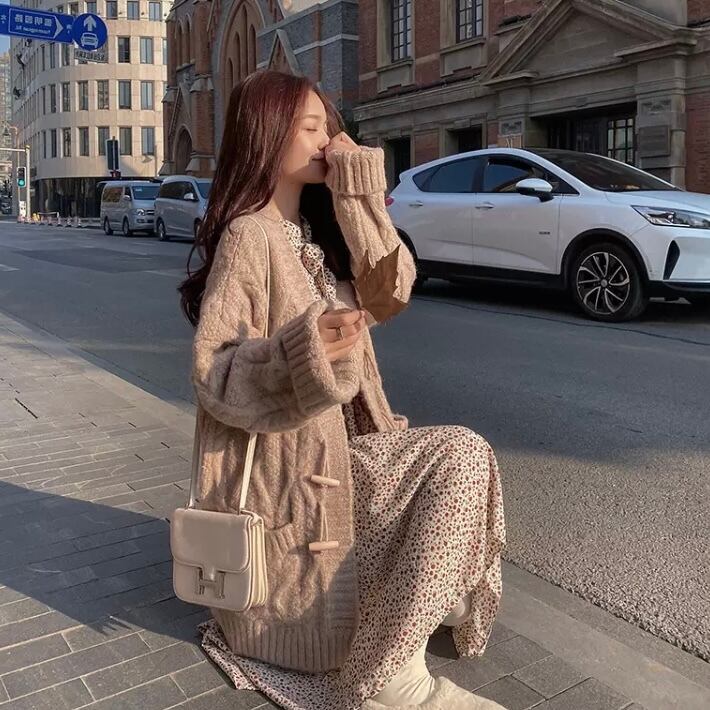 ニット カーディガン レディース ミドル ミディアム丈 長袖 ボリューム袖 ざっくり 萌袖 Vネック ワイド ポケット 前開き ニット ウール 厚手 大人可愛い カジュアル おしゃれ レトロ 大人女子 メンズライク ガーリー ルーズ とろみ感 抜け感 S M L ゆったり ゆる グリーン ピンク 秋カラー 柄 秋 冬 2020 10代 20代 30代 女性用 ママ マタニティ 学生 通学 デート お出かけ 公園デビュー 女子会 休日 あったか モテ 体系カバー 新作 定番 送料無料 トレンド | Rena 韓国ファッション レディースアパレル