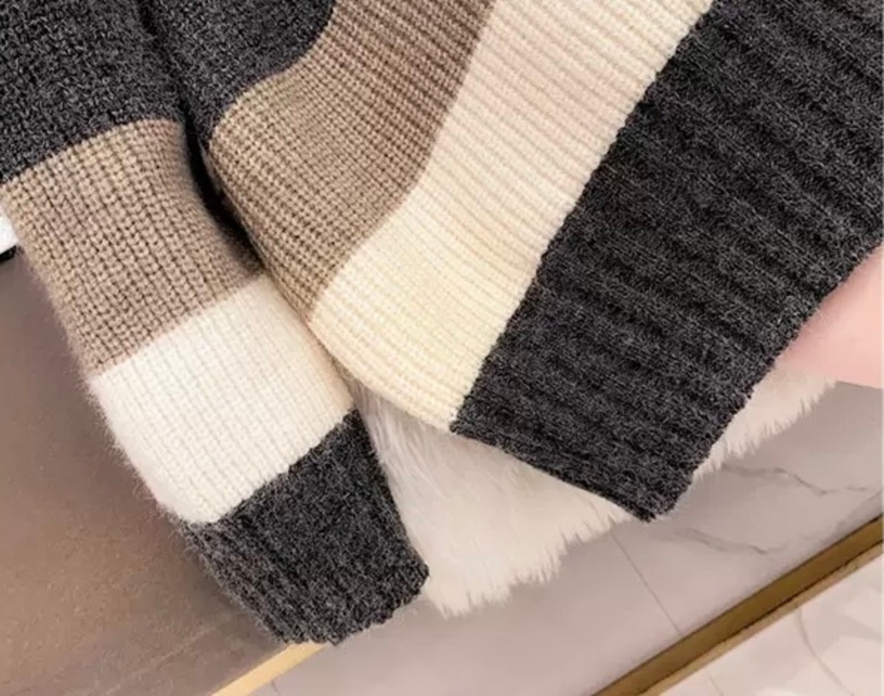ニット セーター レディース ボーダー トップス ミディアム丈 袖あり 長袖 ドロップショルダー 萌袖 ハイネック ワイド ニット かわいい カジュアル おしゃれ レトロ 大人女子 ラフ メンズライク ガーリー ルーズ M L XL 2XL ゆったり ゆる ホワイト ブラウン グレー カーキ 秋カラー 柄 ボーダー 秋 冬 2021 10代 20代 30代 女性用 ママ マタニティ 学生 通学 デート お出かけ 公園デビュー 女子会 休日 あったか モテ 体系カバー 新作 送料無料 ゆったり | Rena 韓国ファッション レディースアパレル