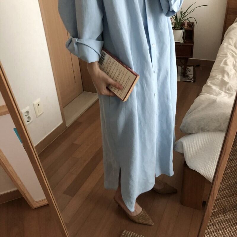 ワンピース シャツワンピース ロング丈 長袖 大人可愛い きれいめ シンプル カジュアル 大人 上品 おしゃれ お洒落 大人女子 ラフ S M L XL 白 ホワイト 青 ブルー 無地 春 秋 10代 20代 30代 40代 女性用 デート お出かけ 公園デビュー 女子会 お泊まり 休日 着回し 普段使い ファッション コーデ 楽ちん 体系カバー 送料無料 | Rena 韓国ファッション レディースアパレル