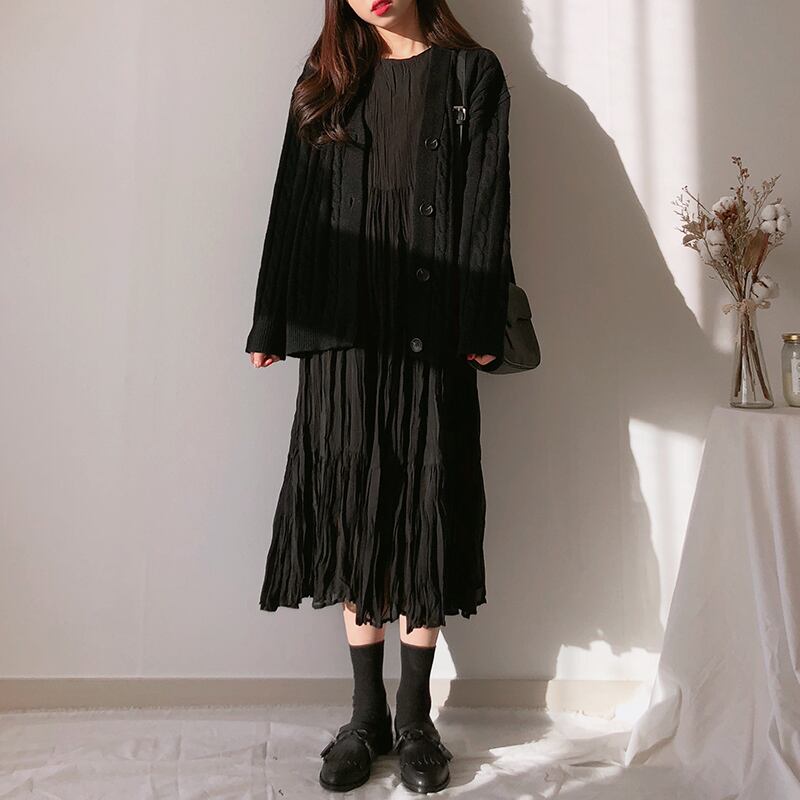 ワンピース シフォン ミディアム丈 長袖 無地 春 秋 冬 かわいい 大人可愛い きれいめ 大人 上品 おしゃれ お洒落 大人女子 キュート ガーリー エレガント 主役級 存在感 S M L XL 白 ホワイト 黒 ブラック 紫 パープル 10代 20代 30代 40代 女性用 デート お出かけ 公園デビュー 女子会 休日 着回し 普段使い ファッション コーデ モテ 送料無料 インスタ映え | Rena 韓国ファッション レディースアパレル
