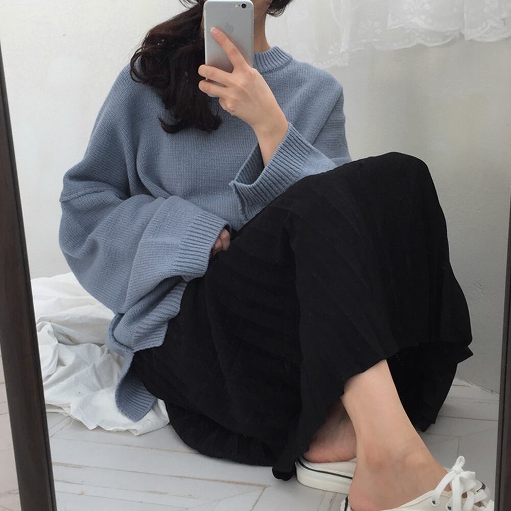 ラウンドネックの大きめセーターです。