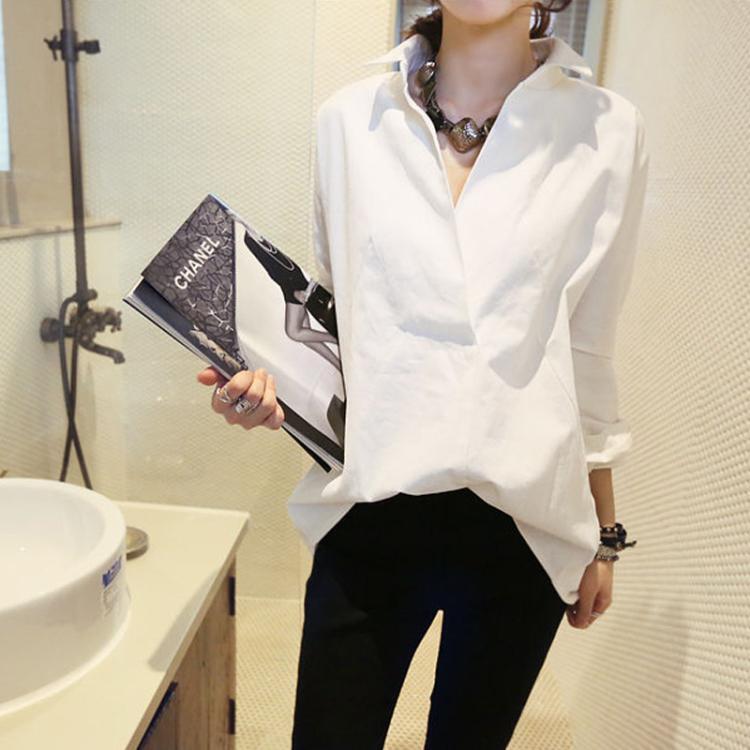 ブラウス シャツ レディース トップス 白シャツ ロング丈 長袖 Vネック 細身 ストレート Iライン 前開き かわいい 大人可愛い きれいめ シンプル カジュアル 大人 おしゃれ お洒落 レトロ 大人可愛い 大人女子 ラフ 個性的 S M L XL 2XL 白 無地 オールシーズン 20代 30代 オフィス ビジネス OL 通勤 学生 通学 お出かけ 女子会 着回し 普段使い 韓国 韓国系 オルチャン ファッション コーデ 楽ちん モテ 送料無料 トレンド 流行 インスタ映え | Rena 韓国ファッション レディースアパレル