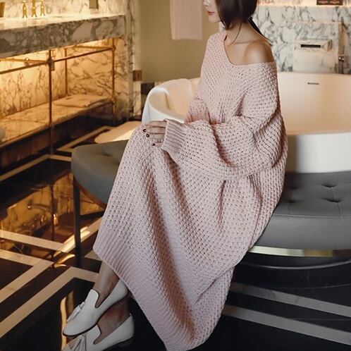 ワンピース ニット ニットワンピース ロング丈 長袖 Vネック 秋 冬 細身 ストレート Iライン ケーブルニット ニット かわいい 大人可愛い きれいめ シンプル カジュアル 大人 上品 おしゃれ お洒落 大人可愛い 大人女子 こなれ感 ルーズ セクシー ワンサイズ 青 ブルー ベージュ ピンク 無地 20代 30代 学生 通学 デート お出かけ 着回し 韓国 韓国系 オルチャン ファッション コーデ モテ 新作 定番 送料無料 トレンド 流行 インスタ映え | Rena 韓国ファッション レディースアパレル