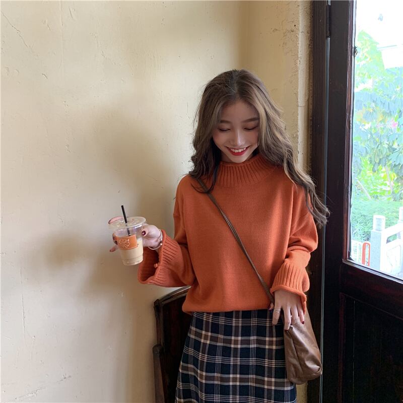 ニット セーター レディース トップス 長袖 ハイネック 秋 冬 かわいい 大人可愛い きれいめ シンプル カジュアル おしゃれ お洒落 大人可愛い 大人女子 こなれ感 ラフ ゆったり ゆる 白 ホワイト 青 ブルー 緑 グリーン 紫 パープル 灰色 グレー 黄色 ベージュ イエロー ピンク オレンジ カラバリ 無地 秋 冬 10代 20代 着回し 普段使い ファッション コーデ スタイル 楽ちん 送料無料 | Rena 韓国ファッション レディースアパレル