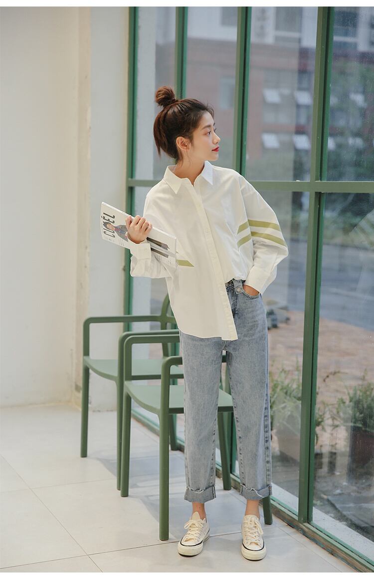 シャツ 白シャツ レディース 長袖 襟付き 大人可愛い シンプル カジュアル 大人 おしゃれ お洒落 大人可愛い 大人女子 こなれ感 ラフ メンズライク 個性的 S M L 大きめ ゆったり 黒 ブラック 緑 グリーン 無地 オールシーズン 10代 20代 30代 OL 通勤 お出かけ イベント ファッション コーデ スタイル 送料無料 | Rena 韓国ファッション レディースアパレル