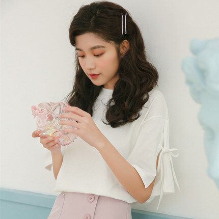 レディース トップス カットソー 袖あり 5分袖 クルーネック ワイド リボン スリット かわいい 大人可愛い きれいめ シンプル カジュアル おしゃれ レトロ 大人女子 こなれ感 ラフ ラブリー キュート ガーリー フリーサイズ ホワイト ブラウン 大人カラー アプリコット 無地 春 夏 10代 20代 30代 40代 50代 通勤 学生 通学 デート お出かけ 女子会 休日 旅行 海 着回し 普段使い ファッション コーデ スタイル 送料無料 | Rena 韓国ファッション レディースアパレル