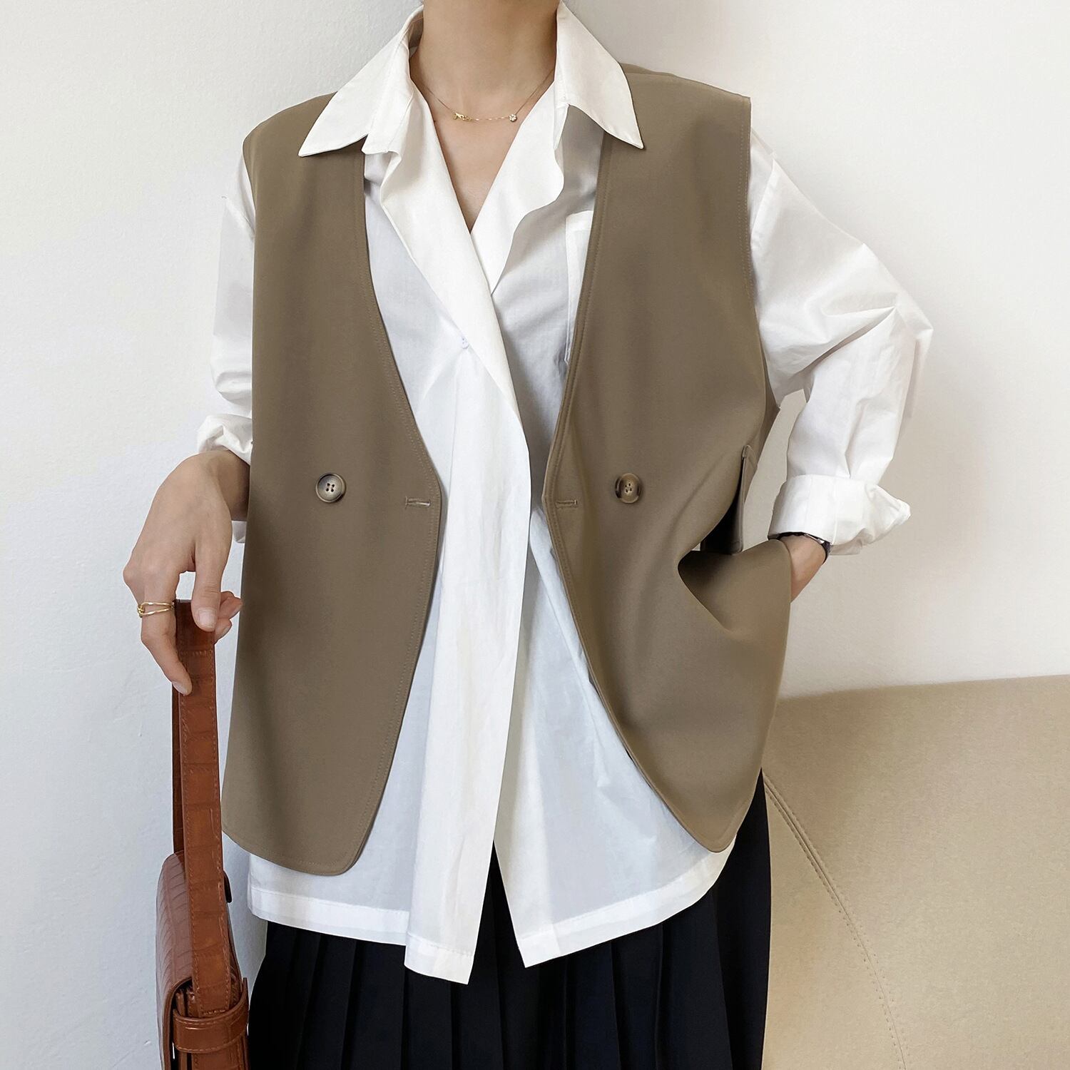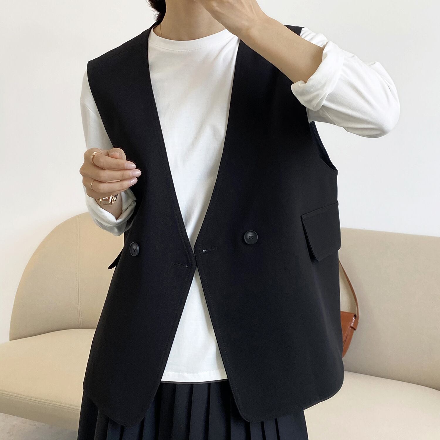 アウター レディース ジレ ベスト ノースリーブ 無地 春 秋 かわいい 大人可愛い きれいめ シンプル カジュアル 大人 上品 おしゃれ お洒落 かっこいい 大人女子 クール エレガント 主役級 存在感 袖なし 白 ホワイト 黒 ブラック カーキ M L 10代 20代 30代 40代 女性用 オフィス ビジネス OL 通勤 学生 通学 デート お出かけ 公園デビュー 女子会 休日 着回し 普段使い ファッション コーデ モテ 送料無料 | Rena 韓国ファッション レディースアパレル