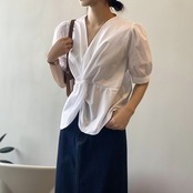 くしゅっとしたデザインが印象的な、ゆるふわ半袖プリーツシャツです。