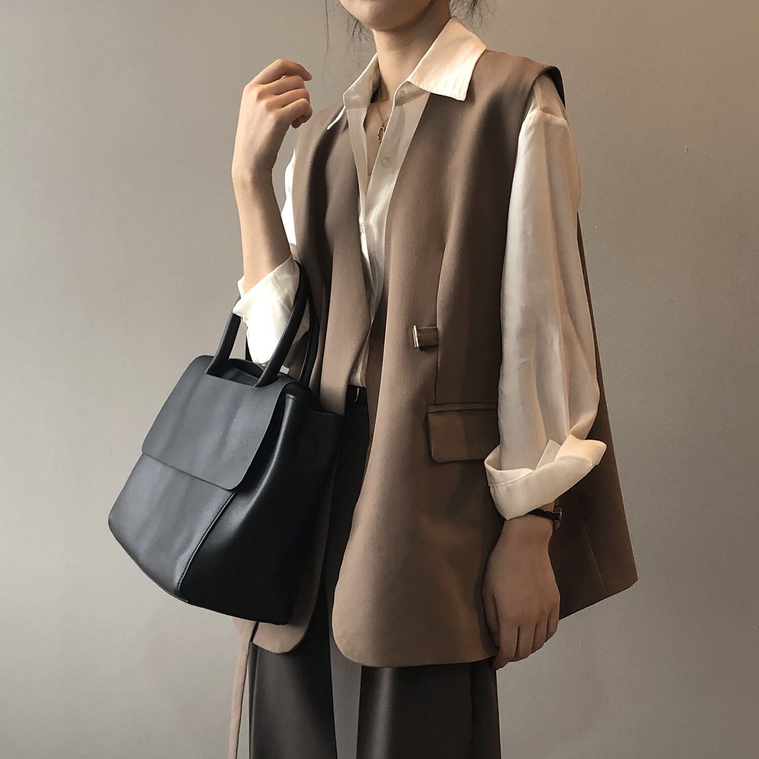ベスト レディース 袖なし ノースリーブ 秋 冬 きれいめ シンプル 大人 おしゃれ お洒落 大人可愛い 大人女子 抜け感 M L 黒 ブラック 茶色 ブラウン 無地 10代 20代 30代 40代 デート お出かけ 女子会 休日 旅行 ファッション コーデ 送料無料 | Rena 韓国ファッション レディースアパレル