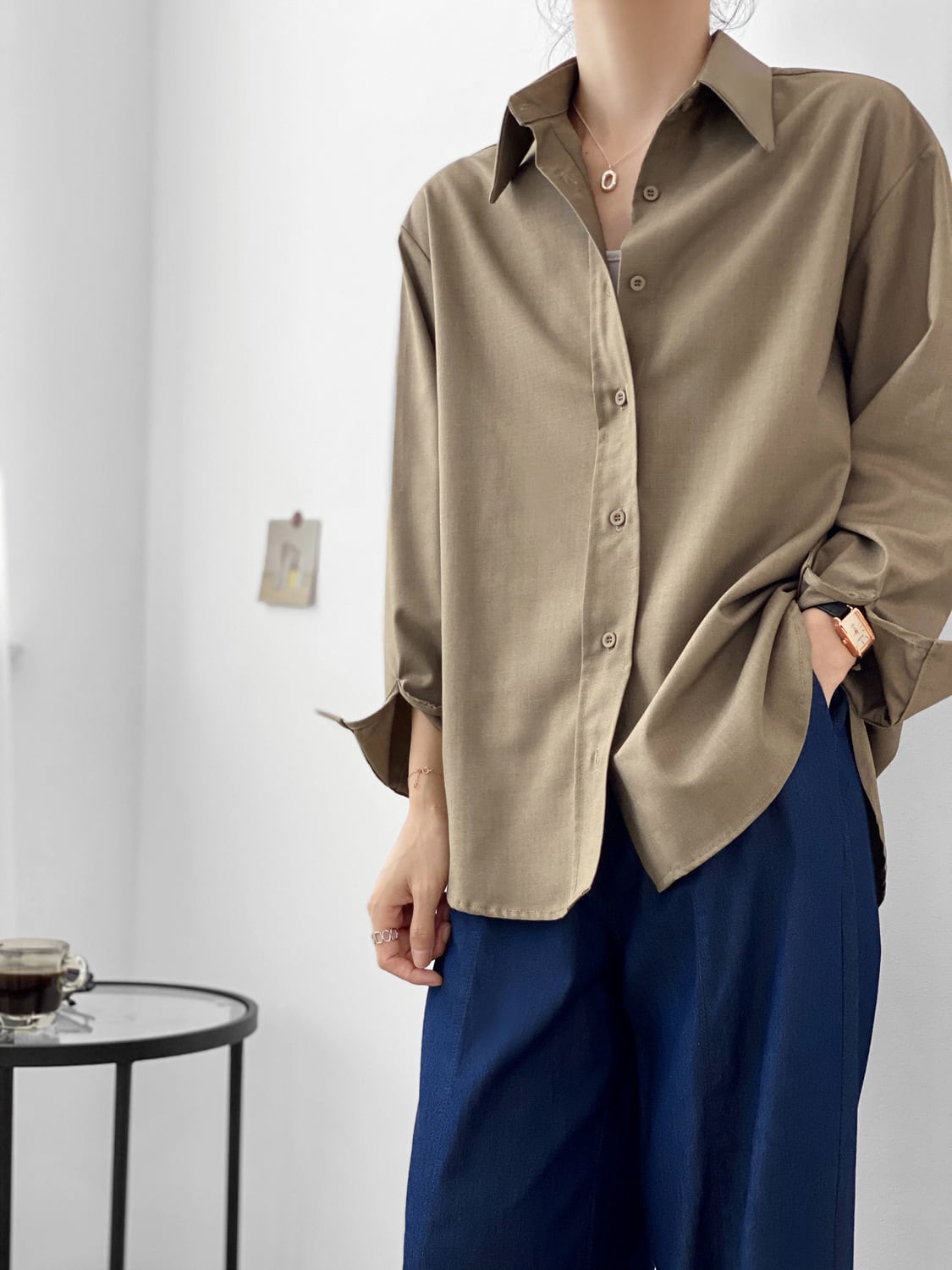 ブラウス シャツ レディース 長袖 春 秋 冬 襟付き 大人可愛い きれいめ シンプル 大人 おしゃれ お洒落 かっこいい 大人可愛い 大人女子 こなれ感 M L 茶色 ブラウン ベージュ 無地 10代 20代 30代 学生 通学 デート お出かけ 休日 旅行 普段使い ファッション コーデ 送料無料 | Rena 韓国ファッション レディースアパレル