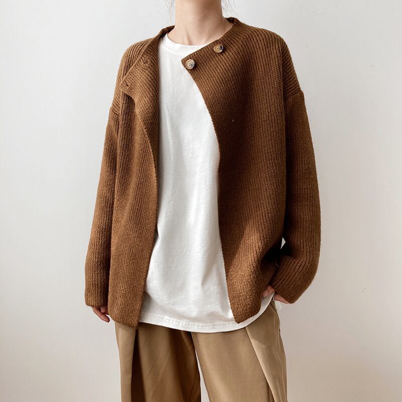 ニット カーディガン セーター レディース 長袖 秋 冬 大人可愛い シンプル おしゃれ お洒落 大人可愛い 大人女子 ラフ ゆったり ゆる 白 ホワイト 茶色 ブラウン ベージュ 10代 20代 30代 学生 通学 デート お出かけ 休日 旅行 着回し 普段使い 重ね着 ファッション コーデ 送料無料 | Rena 韓国ファッション レディースアパレル