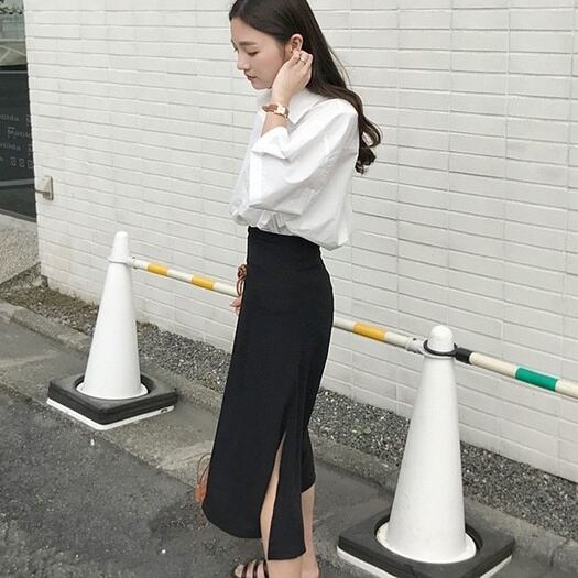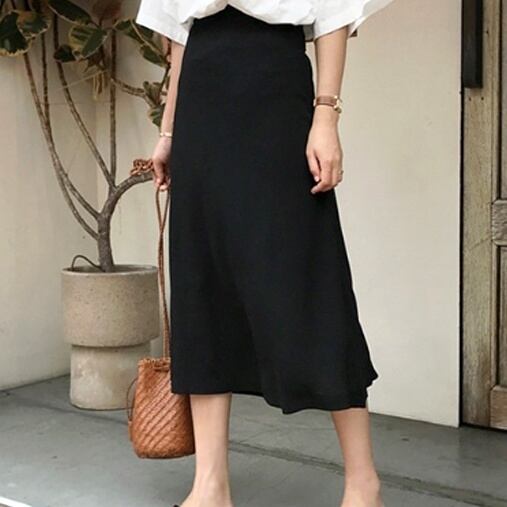 スカート ボトムス 膝下 ミディアム丈 Aライン ブラック 無地 スリット サイドスリット 大人可愛い きれいめ シンプル カジュアル 大人 上品 おしゃれ お洒落 S M L XL 黒 10代 20代 30代 40代 50代 女性用 オフィス ビジネス OL 通勤 学生 通学 デート お出かけ 公園デビュー 女子会 休日 着回し 普段使い ファッション コーデ モテ 体系カバー 脚長 送料無料 | Rena 韓国ファッション レディースアパレル
