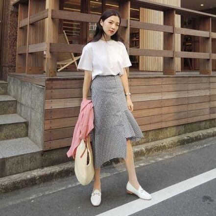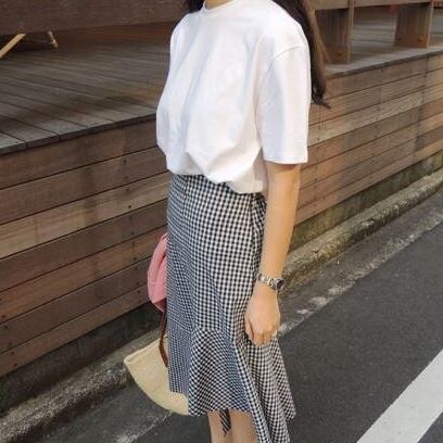 スカート ボトムス ギンガムチェック ミディアム丈 アシンメトリ Aライン かわいい 大人可愛い きれいめ シンプル カジュアル 大人 上品 おしゃれ お洒落 大人女子 ラフ S M L XL 白 ホワイト 黒 ブラック 無地 チェック柄 春 夏 10代 20代 30代 女性用 学生 通学 デート お出かけ 公園デビュー 女子会 休日 着回し 普段使い ファッション コーデ モテ 体系カバー 脚長 送料無料 | Rena 韓国ファッション レディースアパレル