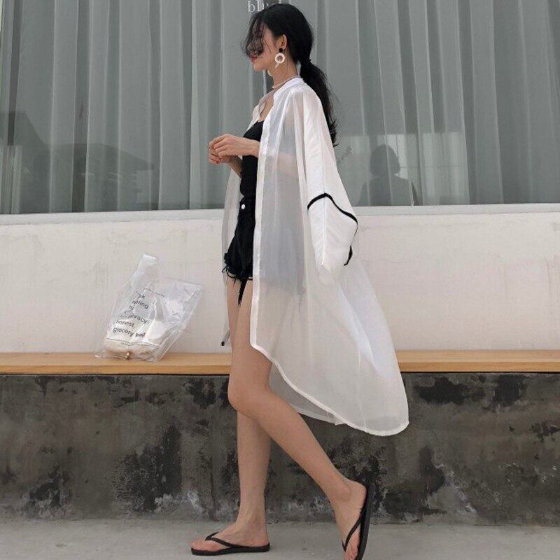 シャツ ロング丈 長袖 無地 春 夏 秋 細身 ストレート Iライン 透け感 シースルー かわいい 大人可愛い きれいめ シンプル カジュアル 大人 上品 おしゃれ お洒落 大人女子 こなれ感 ラフ エレガント 抜け感 Vネック マキシ 袖あり 白 ホワイト S M L XL 2XL 20代 30代 オフィス ビジネス OL 通勤 学生 通学 デート お出かけ 公園デビュー 女子会 休日 リゾート 着回し 普段使い 重ね着 コーデ スタイル 楽ちん モテ 安い 送料無料 トレンド 流行 インスタ映え | Rena 韓国ファッション レディースアパレル