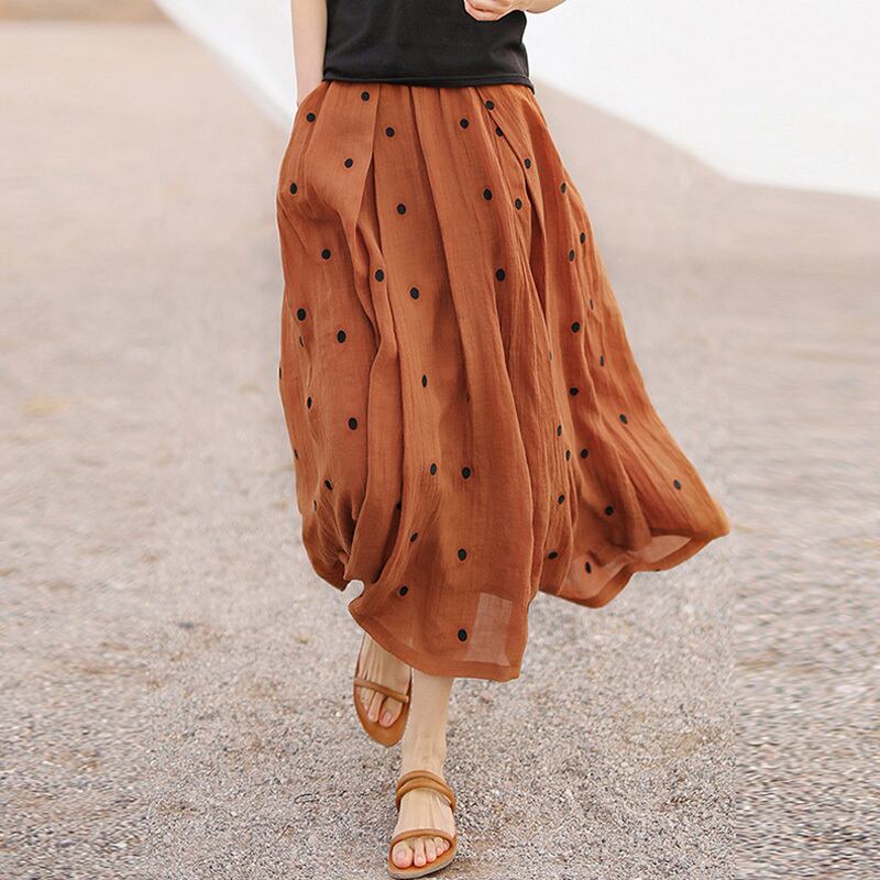 スカート ロングスカート ロング丈 ドット 夏 かわいい 大人可愛い きれいめ 大人 上品 おしゃれ お洒落 大人女子 エレガント 主役級 存在感 ロング 茶色 ブラウン S M L XL 10代 20代 30代 40代 女性用 学生 通学 デート お出かけ 公園デビュー 女子会 休日 着回し 普段使い ファッション コーデ 楽ちん モテ 送料無料 インスタ映え | Rena 韓国ファッション レディースアパレル
