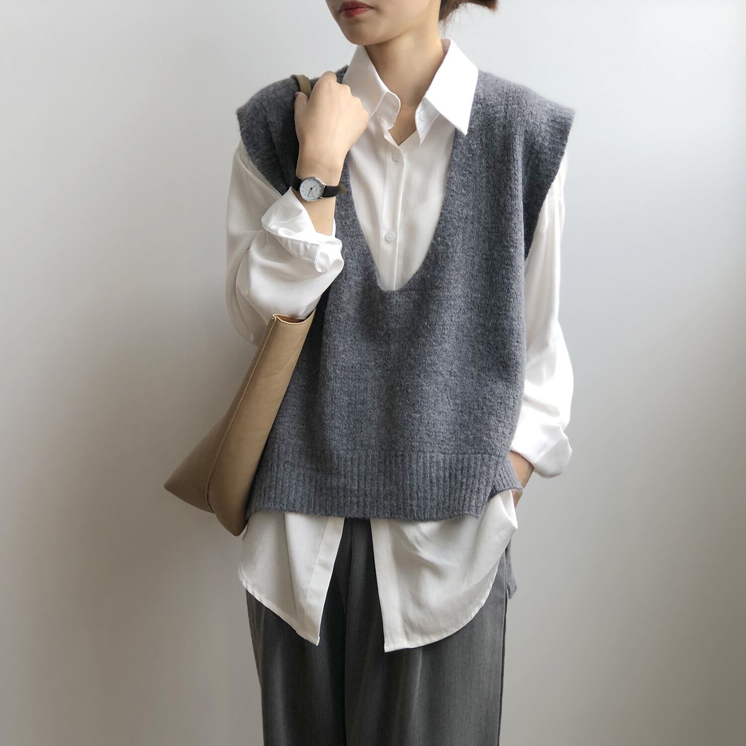 ニット ベスト ショート丈 ノースリーブ 無地 秋 冬 ストレート かわいい 大人可愛い きれいめ シンプル カジュアル 大人 上品 おしゃれ かっこいい レトロ 大人女子 こなれ感 ラフ メンズライク キュート ガーリー Vネック ニット ブラック ブラウン グレー ベージュ イエロー 大人カラー フリーサイズ 10代 20代 30代 40代 50代 60代 通勤 学生 通学 デート お出かけ 女子会 休日 着回し 普段使い ファッション コーデ スタイル あったか 体系カバー 送料無料 | Rena 韓国ファッション レディースアパレル