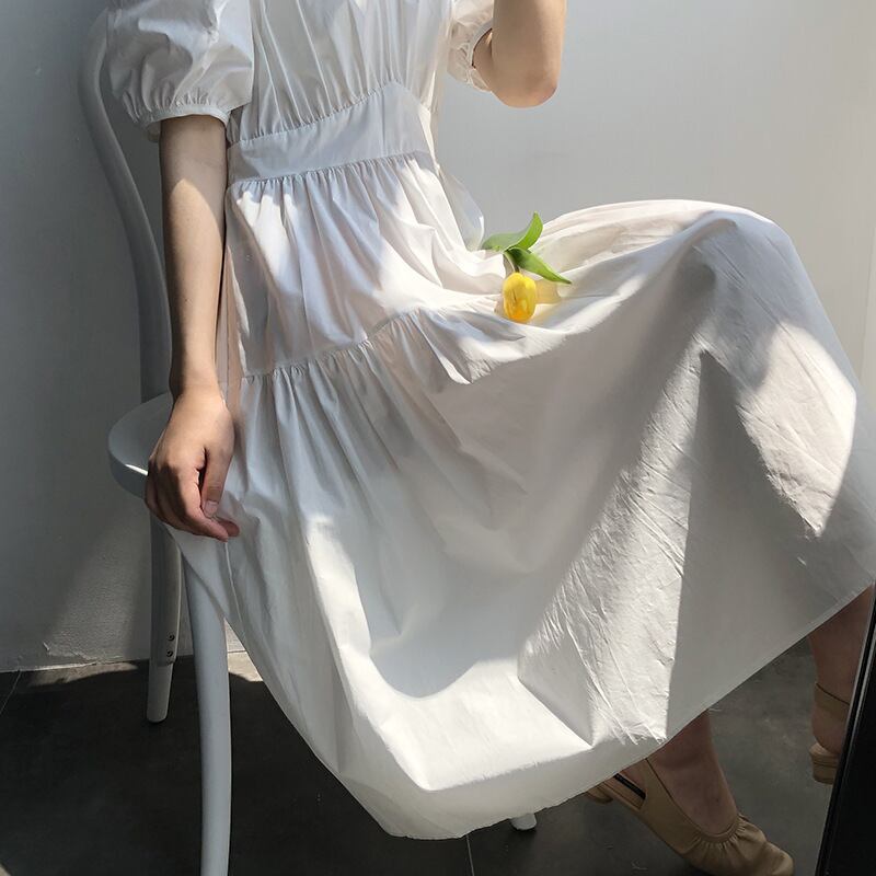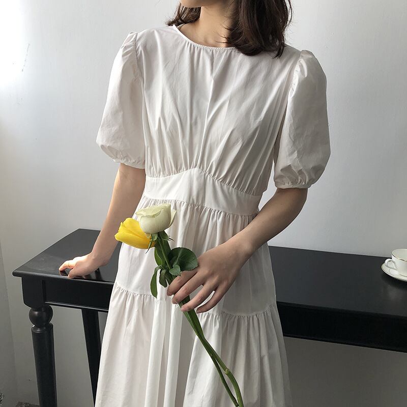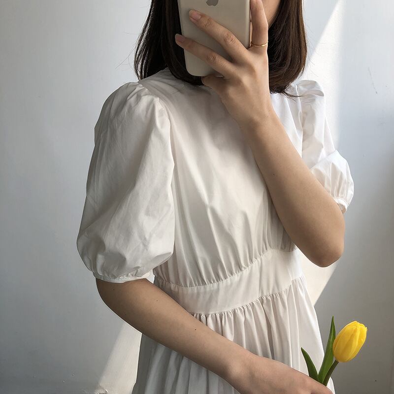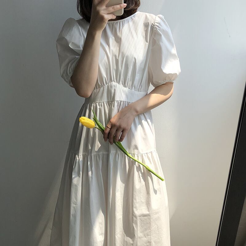 ワンピース Aラインワンピース ひざ下 半袖 無地 春 夏 ハイウエスト かわいい 大人可愛い きれいめ シンプル カジュアル 大人 上品 おしゃれ レトロ 大人女子 こなれ感 ラフ ラブリー キュート ガーリー エレガント バックリボン 袖あり パフスリーブ 大人カラー M L ゆったり 10代 20代 30代 40代 50代 OL 通勤 学生 通学 デート お出かけ 女子会 休日 着回し 普段使い ファッション コーデ スタイル 楽ちん 体系カバー 脚長 送料無料 | Rena 韓国ファッション レディースアパレル
