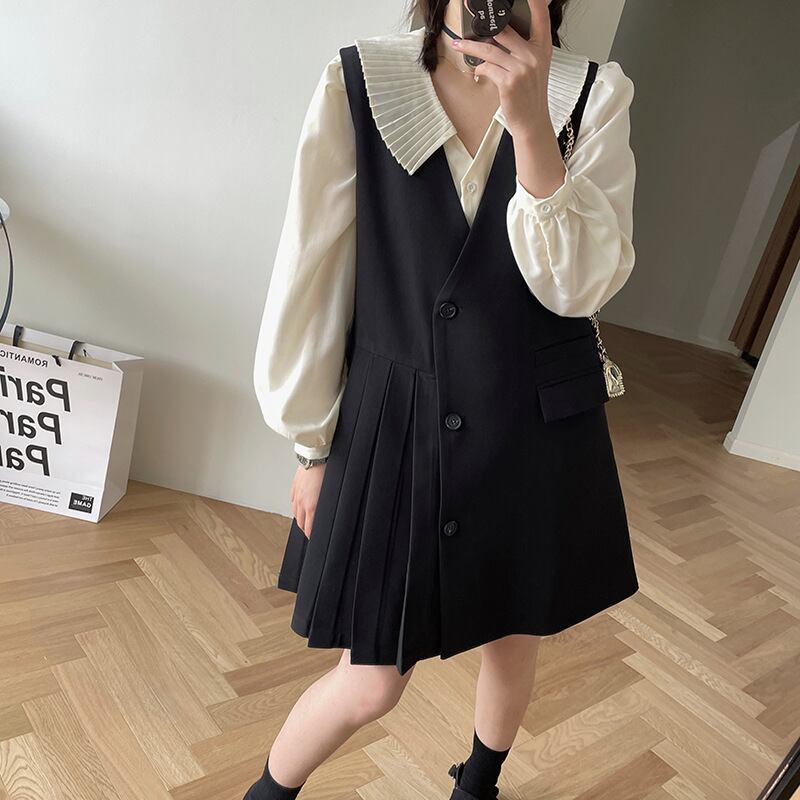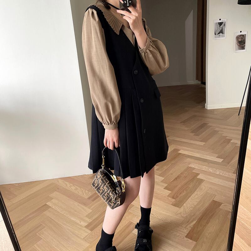 ワンピース プリーツスカート Aラインワンピース ショート丈 ノースリーブ 無地 春 秋 冬 スリム Aライン 裾フレア プリーツ かわいい 大人可愛い きれいめ シンプル カジュアル 大人 おしゃれ お洒落 大人可愛い 大人女子 こなれ感 キュート 個性的 Vネック ショート 袖なし 黒 ブラック S M 20代 30代 オフィス ビジネス OL 通勤 学生 通学 デート お出かけ 休日 着回し 普段使い 重ね着 韓国 韓国系 オルチャン ファッション コーデ 送料無料 トレンド 流行 インスタ映え | Rena 韓国ファッション レディースアパレル